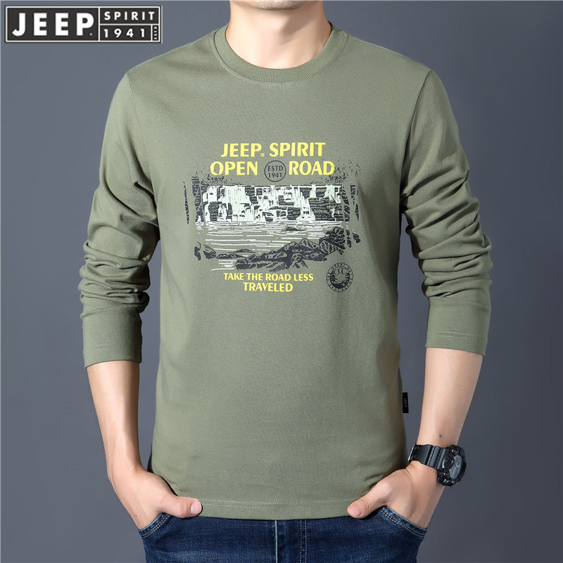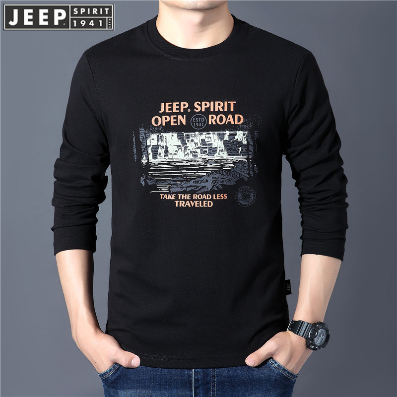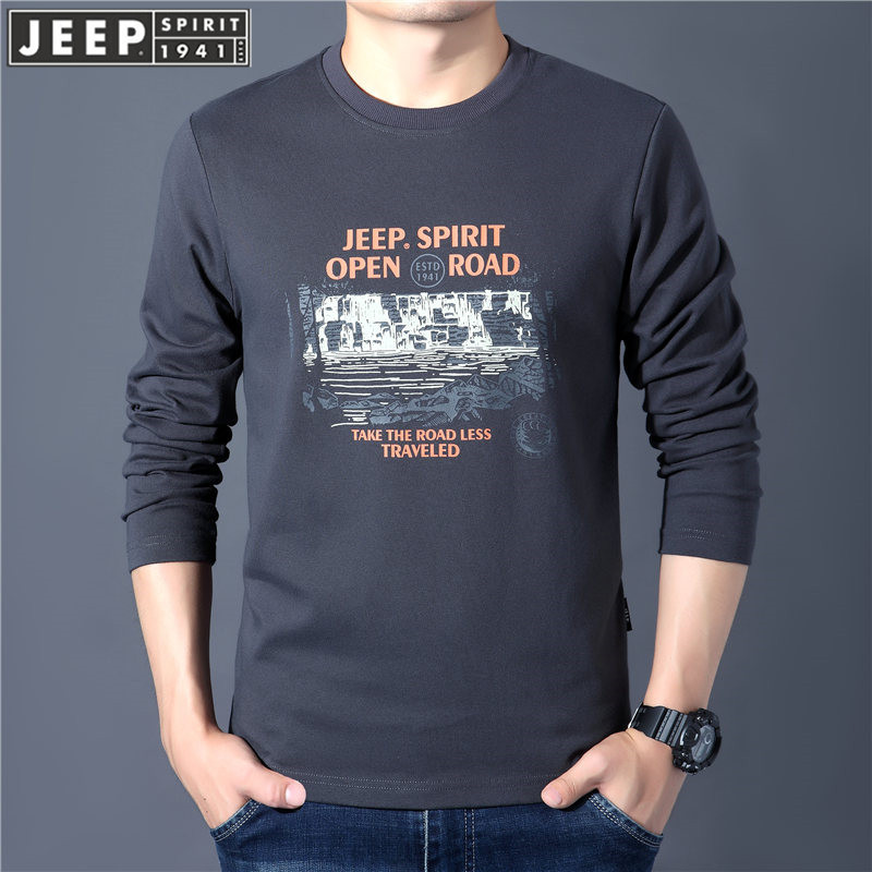 JEEP SPIRIT秋冬新品秋季印花男装舒适休闲透气打底衫宽松大码男士长袖tTS5112