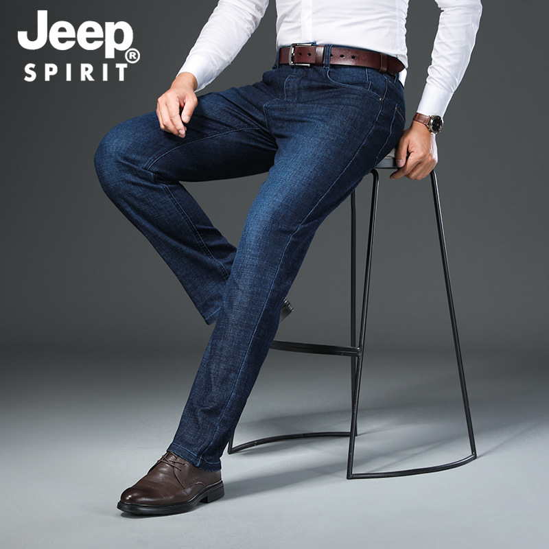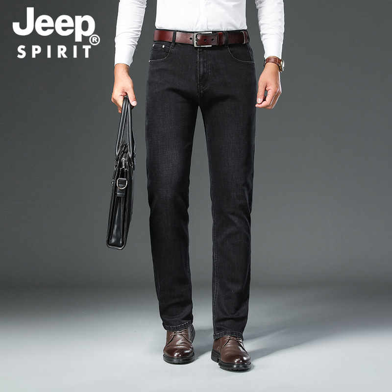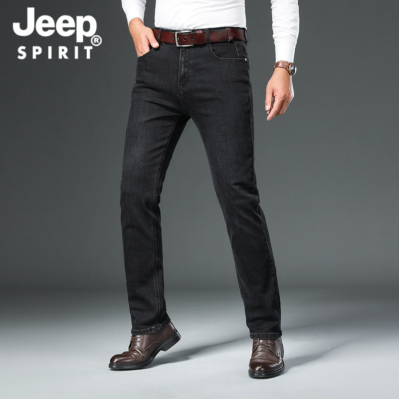 JEEP SPIRIT时尚商务牛仔裤男中年爸爸休闲裤直筒宽松弹力牛子裤秋冬新品HB-K856