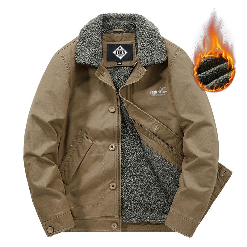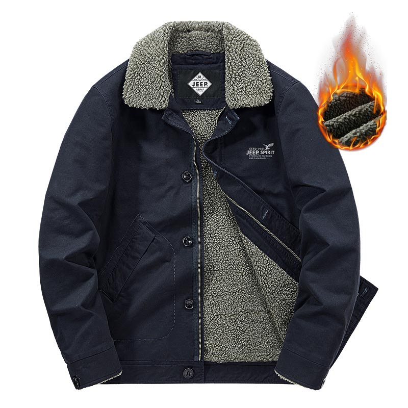 JEEP SPIRIT秋冬季保暖棉衣男翻领羊羔绒加绒加厚棉服中年棉袄外套男夹克WSS18905