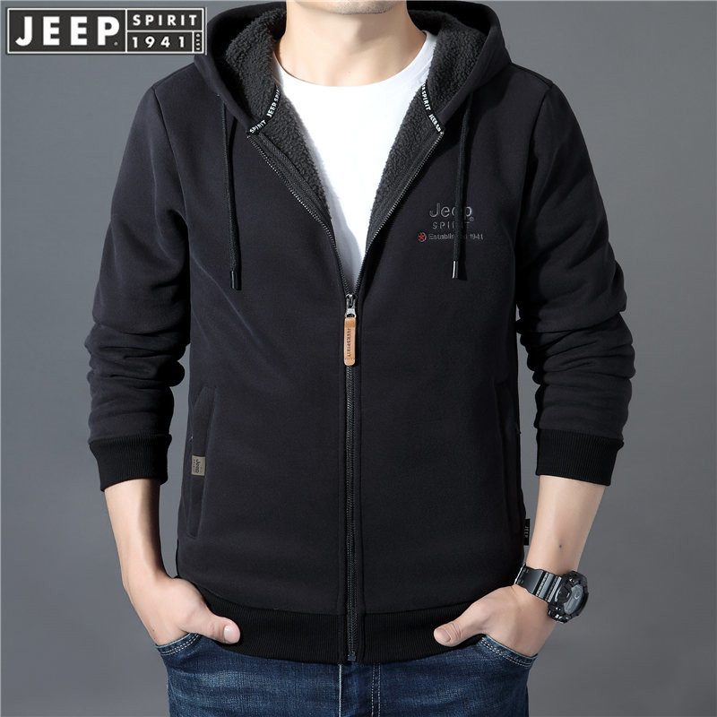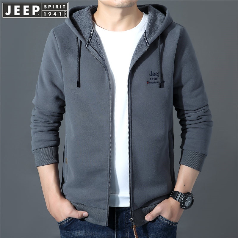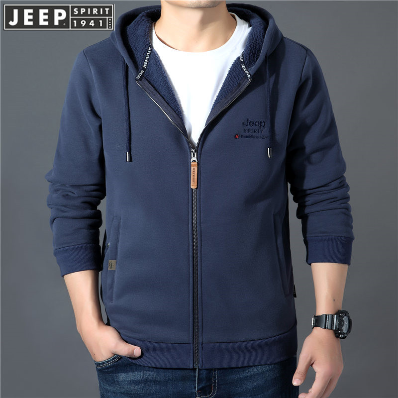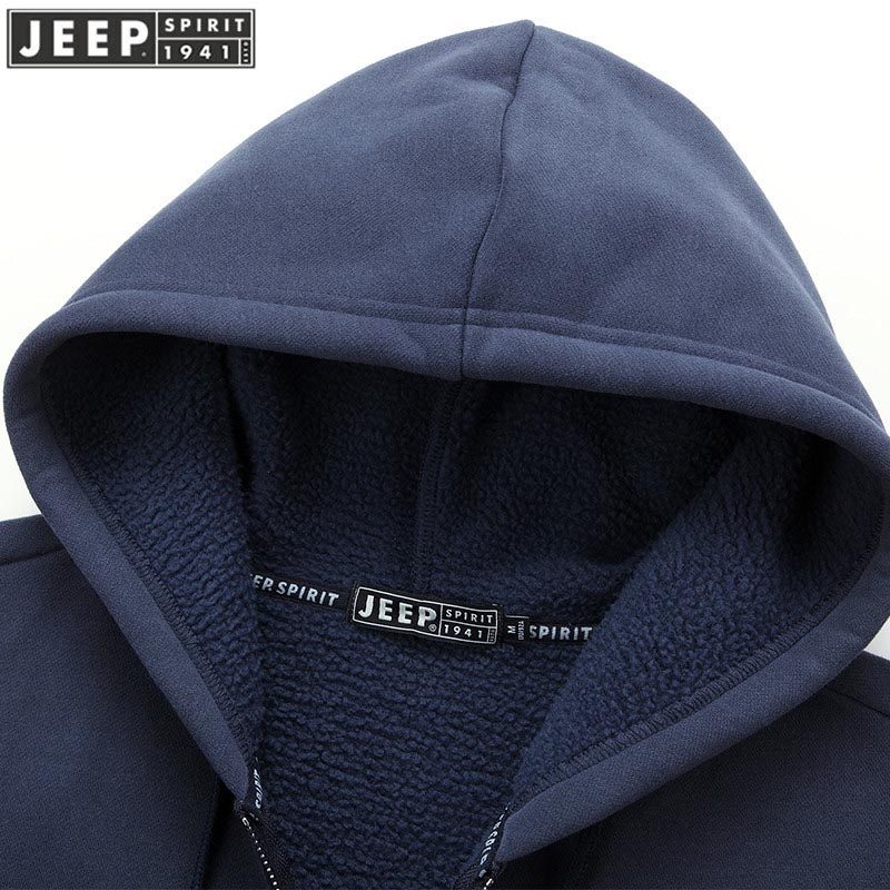 JEEP SPIRIT长袖卫衣秋季男士纯色拉链连帽上衣开衫宽松大码休闲polo衫JC5130