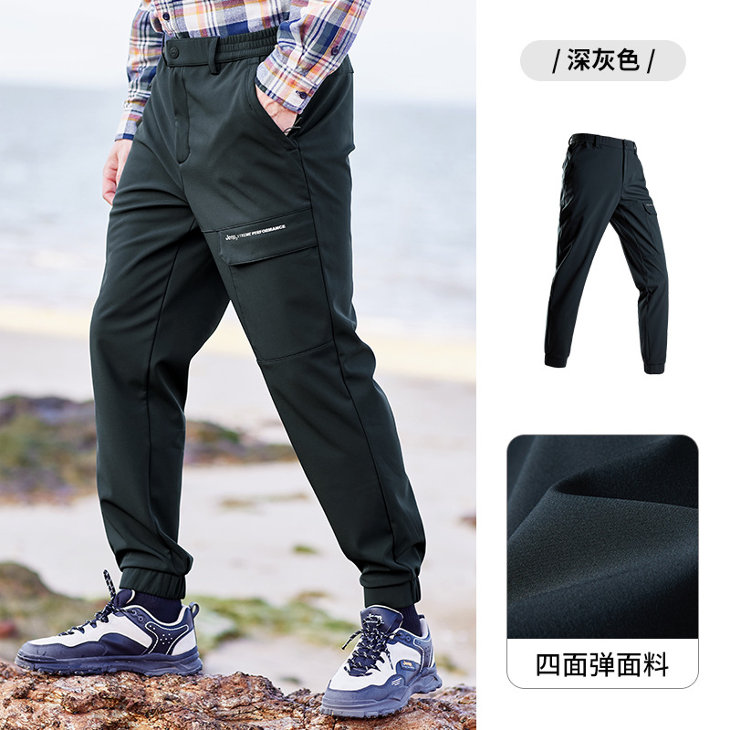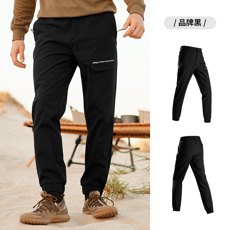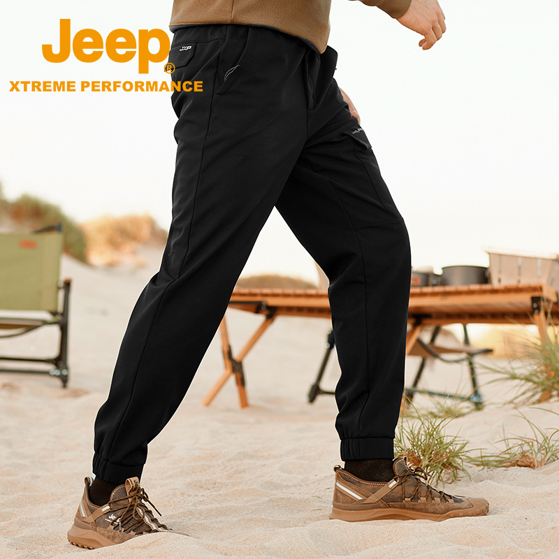 JEEP 男士运动裤加绒保暖直筒宽松男装裤子卫裤休闲复合软壳束脚裤J232096079