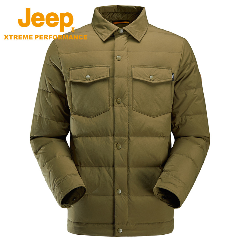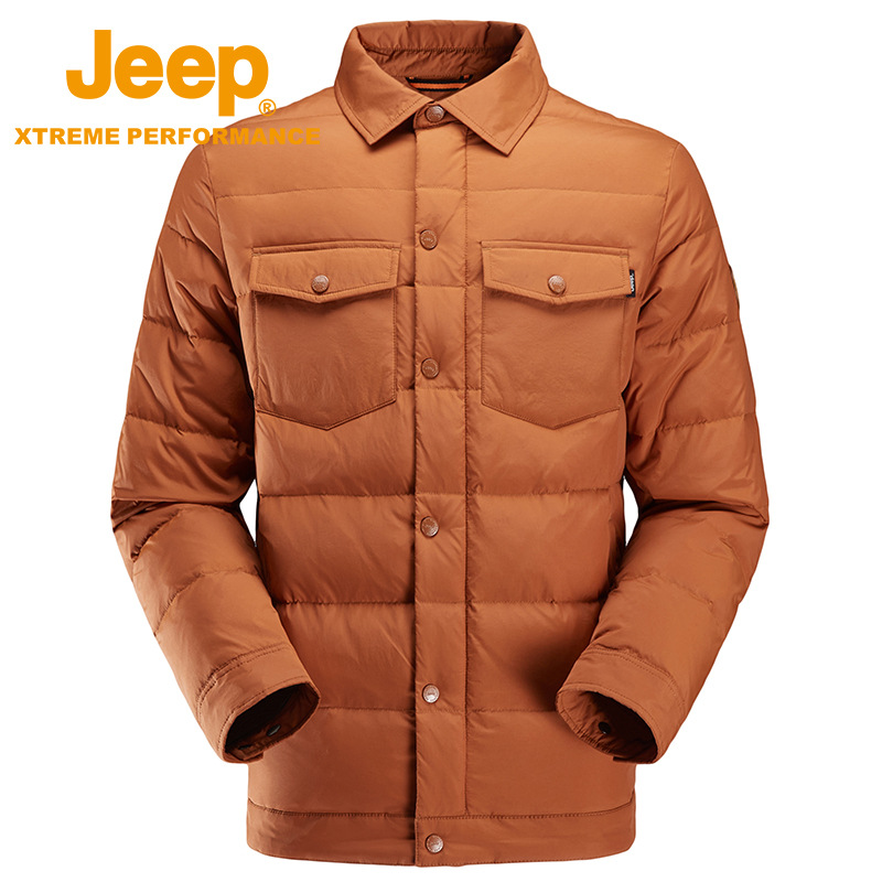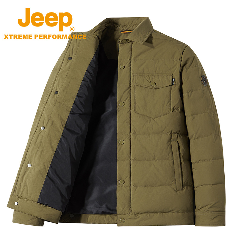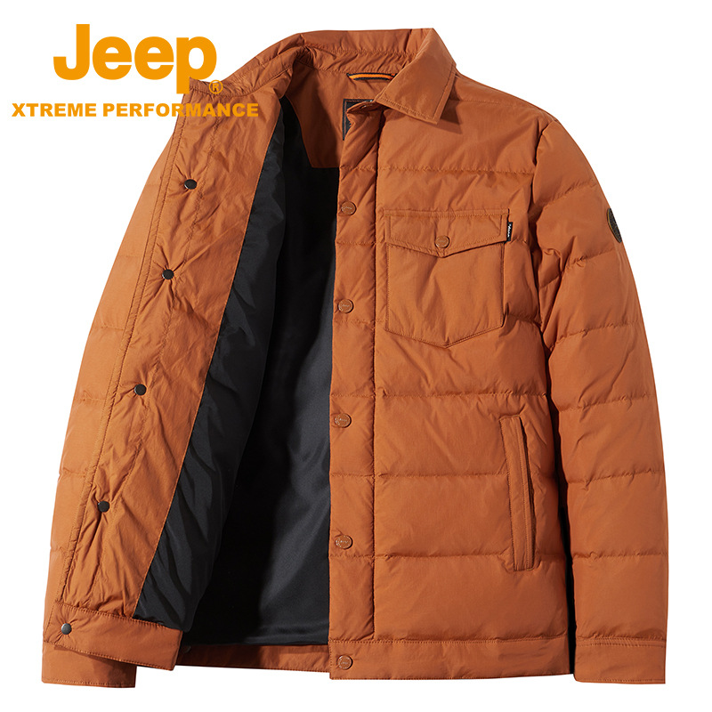 JEEP 羽绒服翻领帅气商务成熟男士休闲多口袋潮白鸭绒大衣外套秋冬J242094792