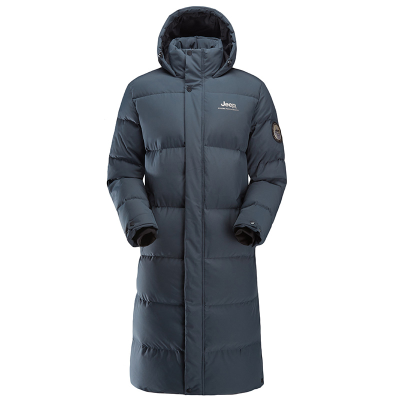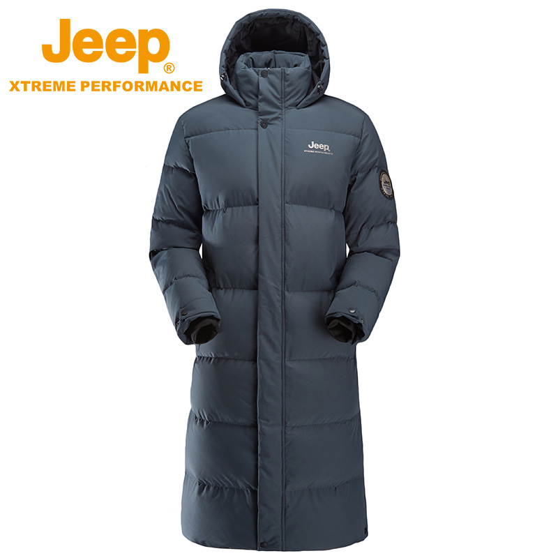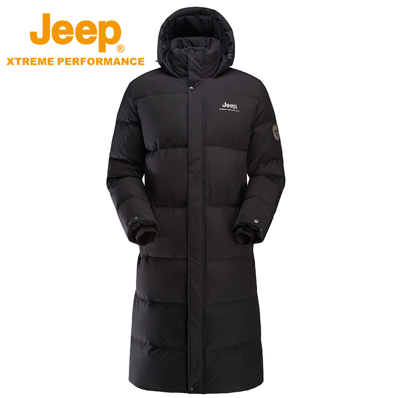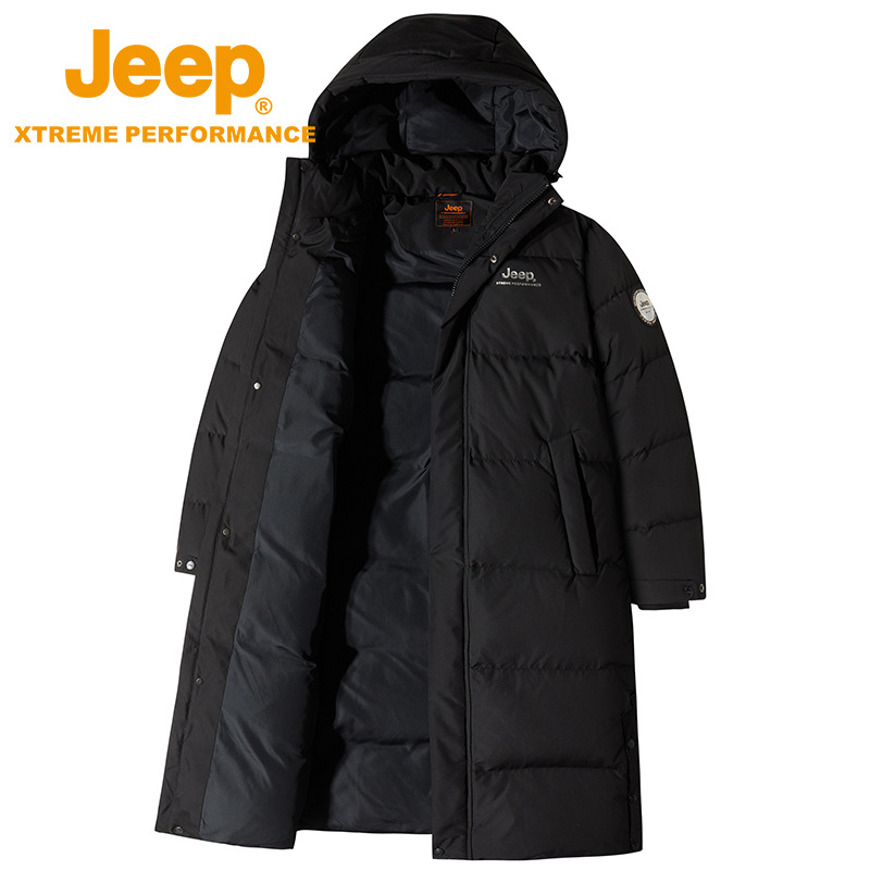 JEEP 秋冬新品男长款羽绒服连帽加厚防泼水休闲宽松白鸭绒大衣外套J242094790