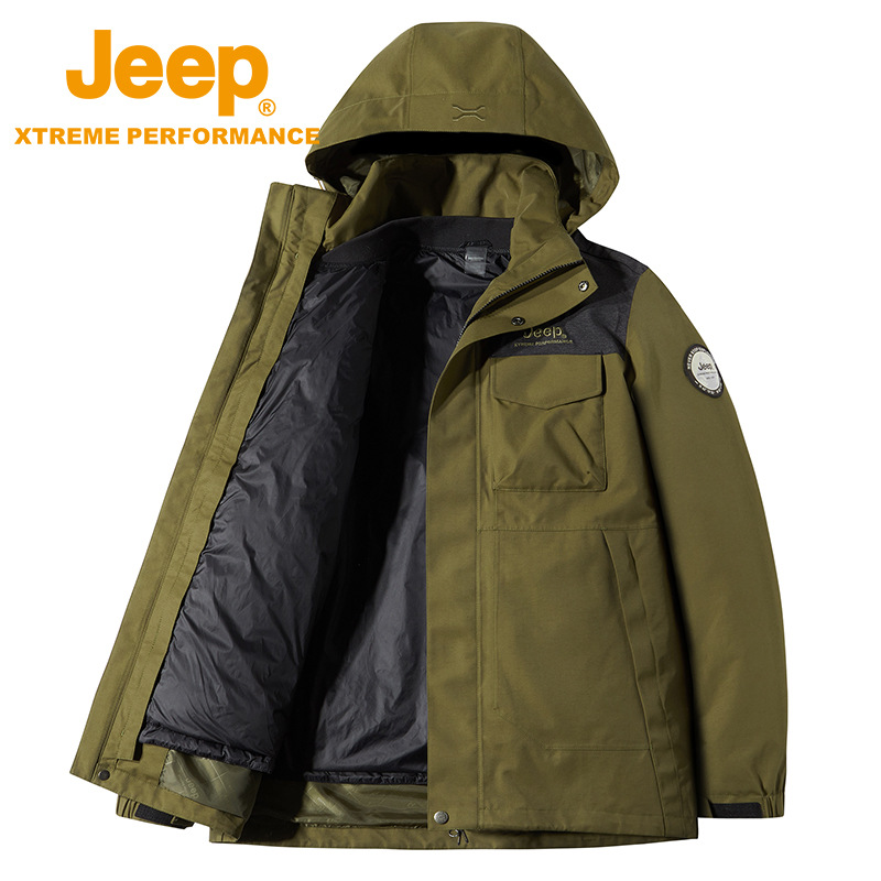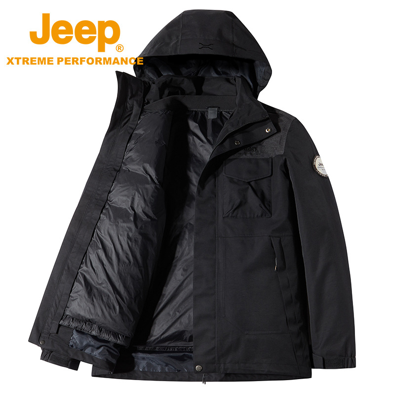 JEEP 秋冬季新品新款冲锋衣男士可拆卸羽绒两件套户外登山服外套潮J242094096