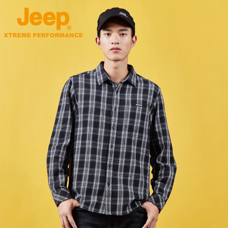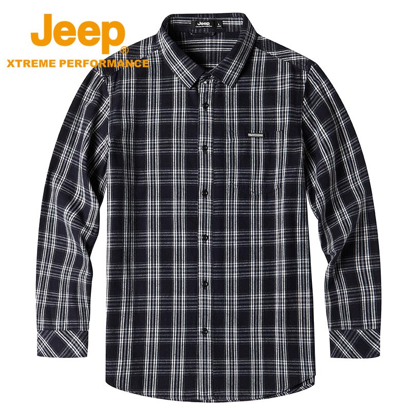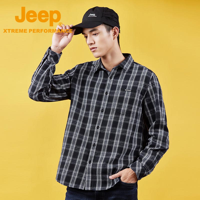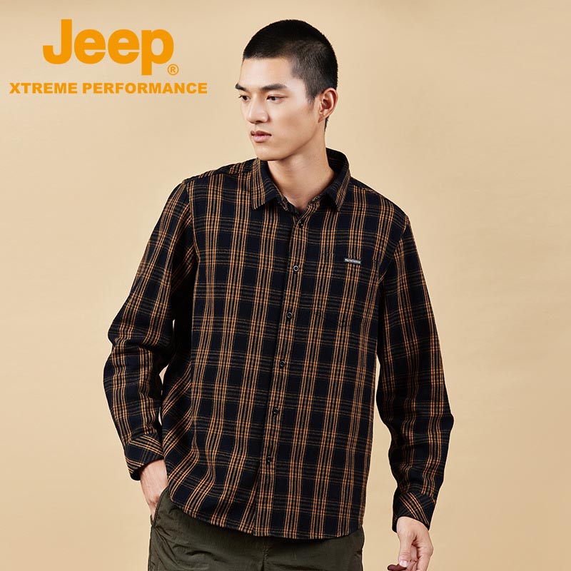 JEEP 时尚新款格子长袖衬衫男秋季男士上衣外套休闲宽松衬衣秋冬新J232094628