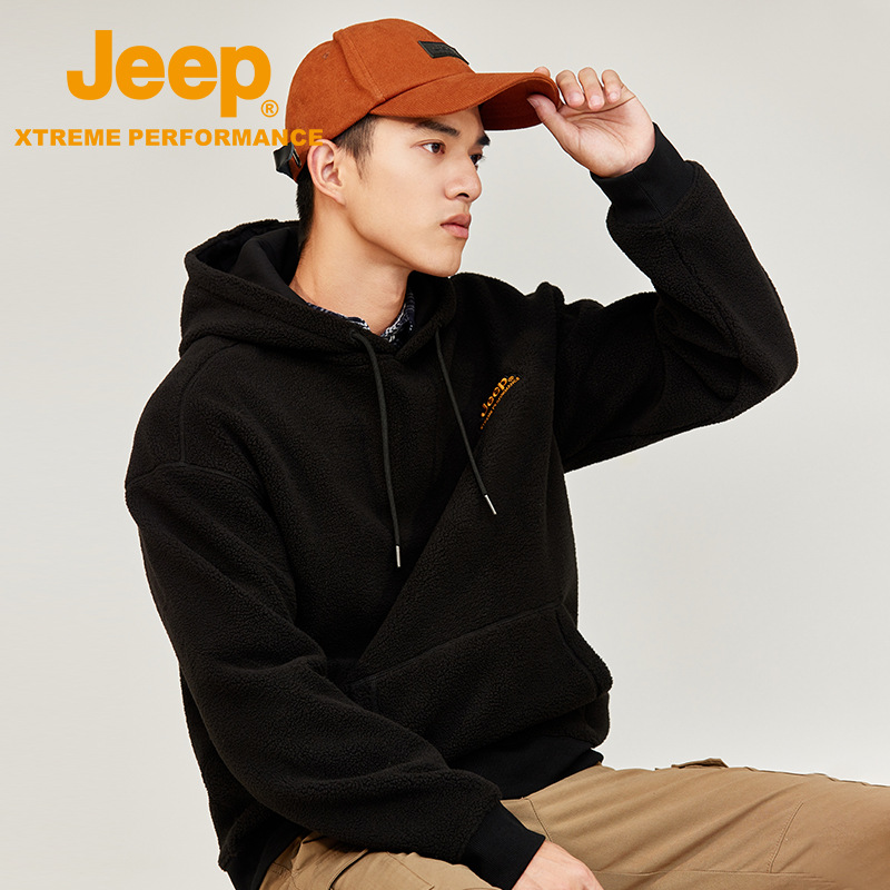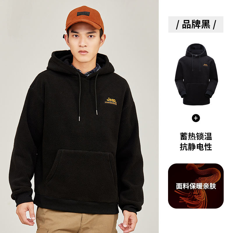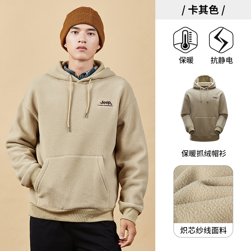 JEEP 加绒加厚抓绒衣男户外男士内胆双面摇粒绒秋冬新户外保暖帽衫J232094215