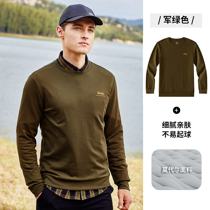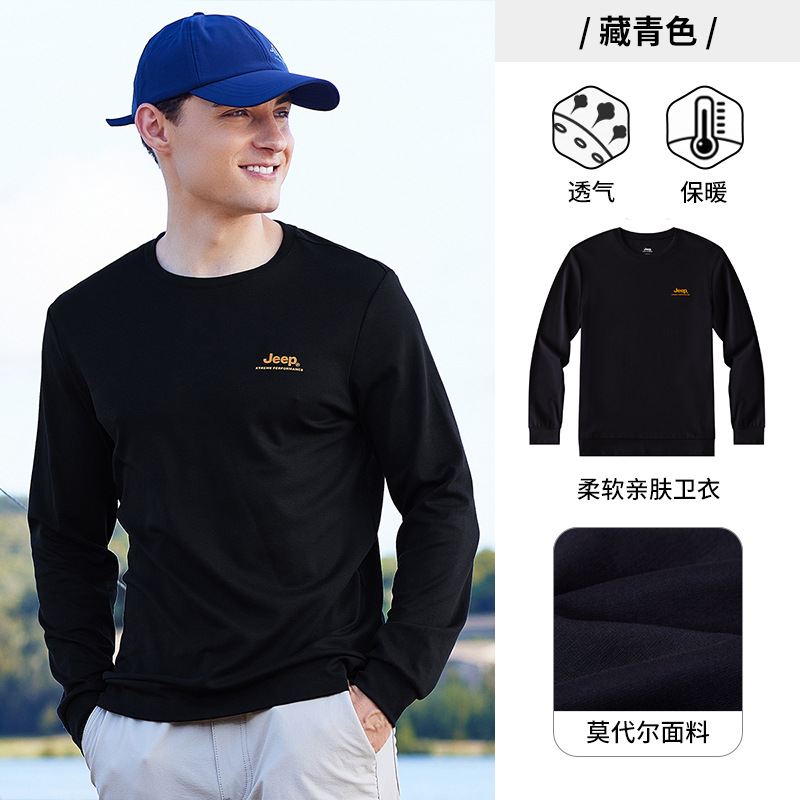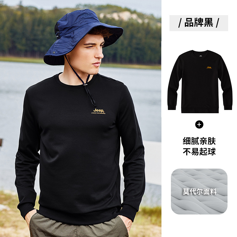 JEEP 秋季男装圆领休闲卫衣打底衫宽松大码男士长袖t恤男秋冬新品J232094353