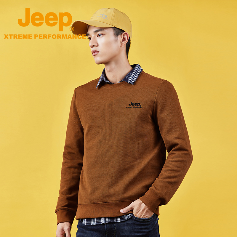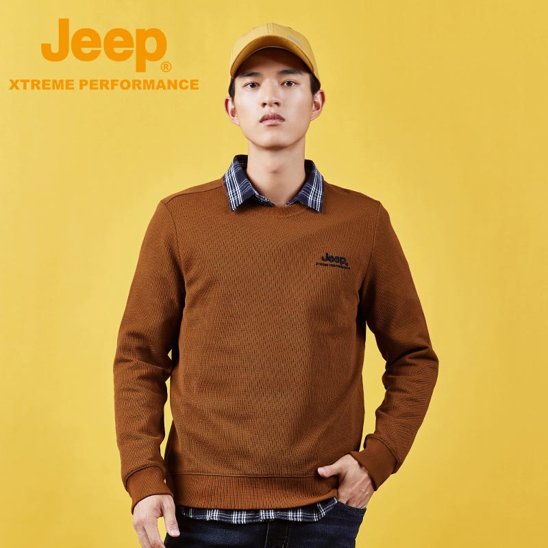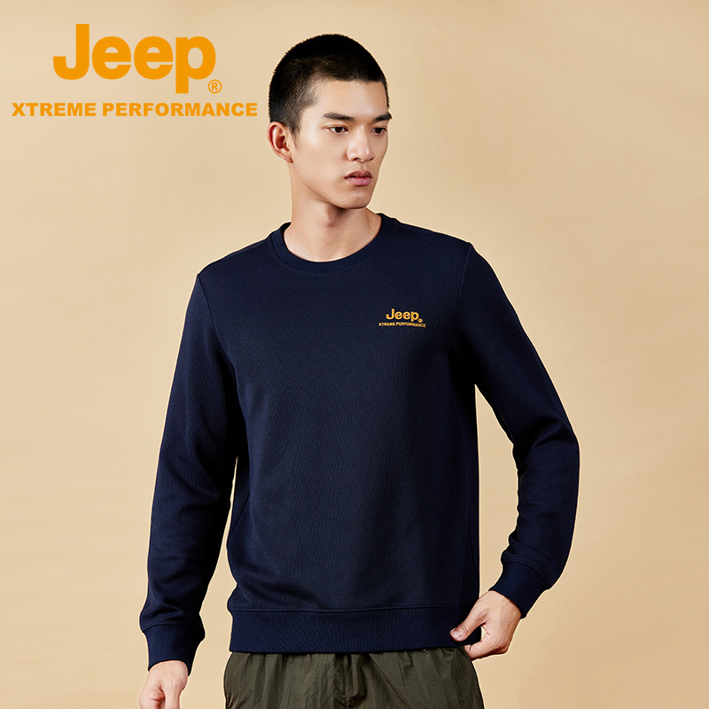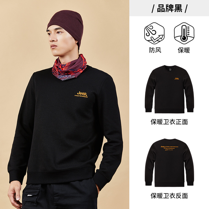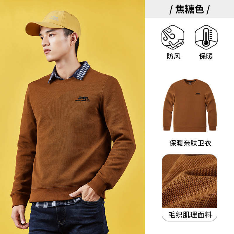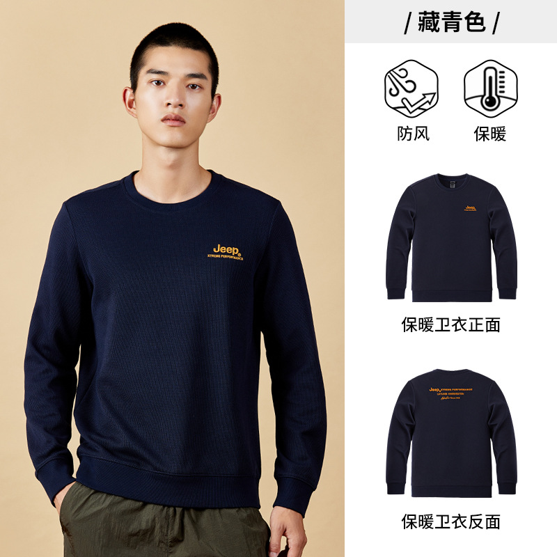JEEP 纯色简约卫衣男士秋季圆领长袖t恤宽松男装运动套头打底秋冬J232094346