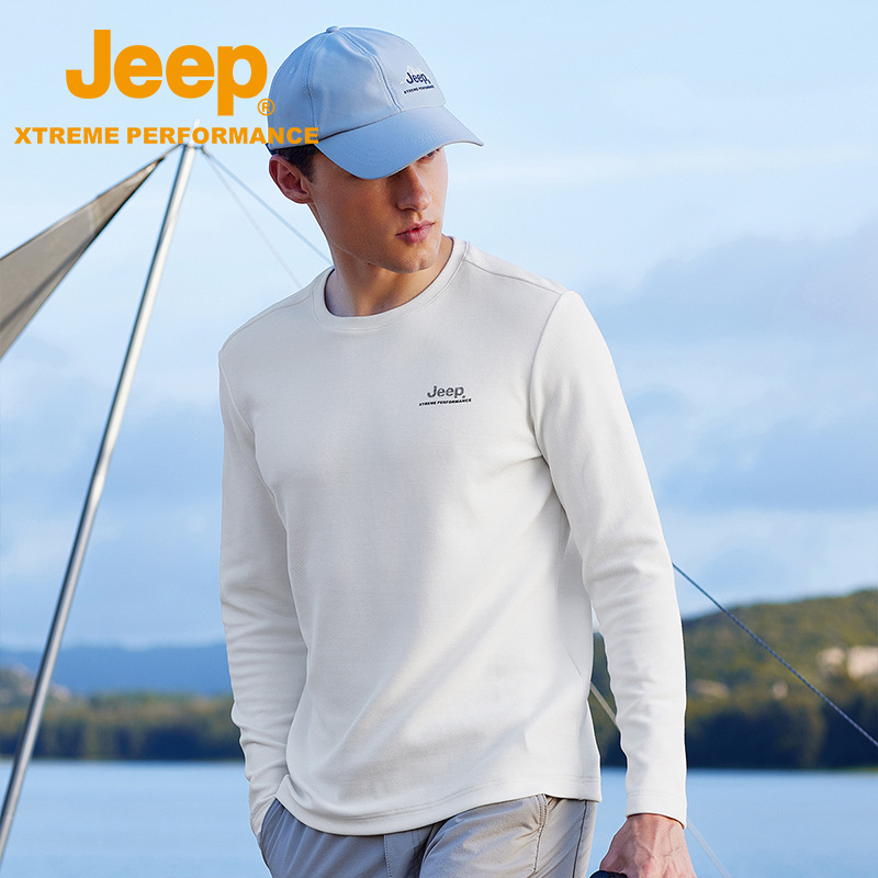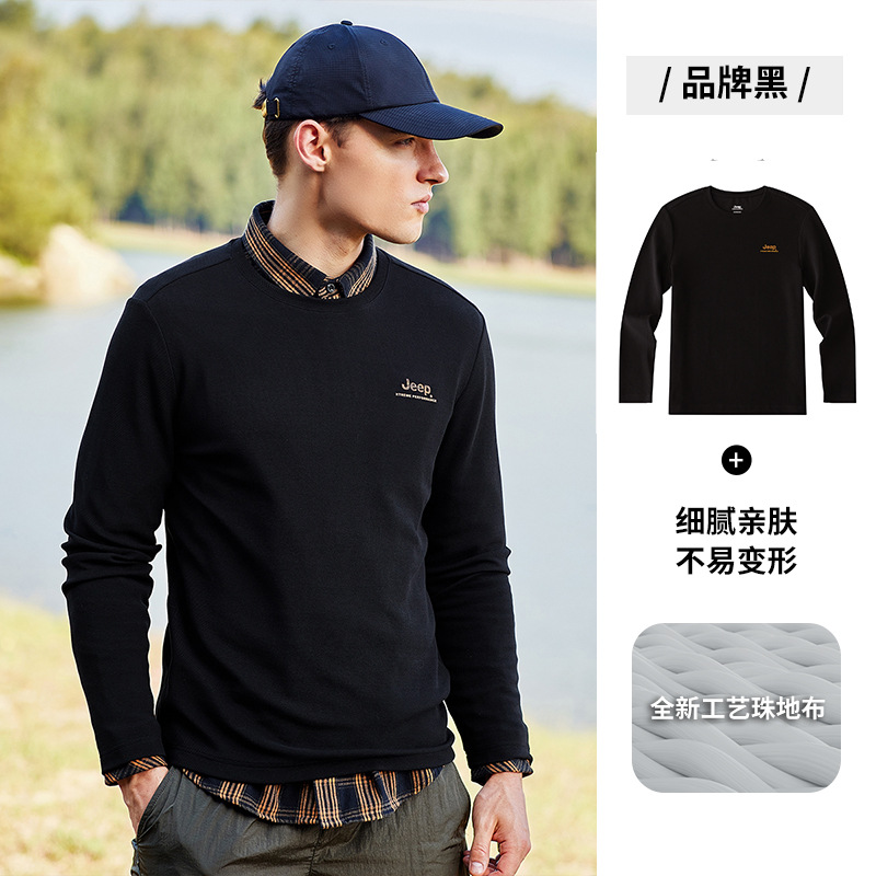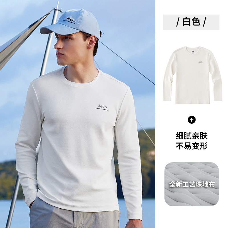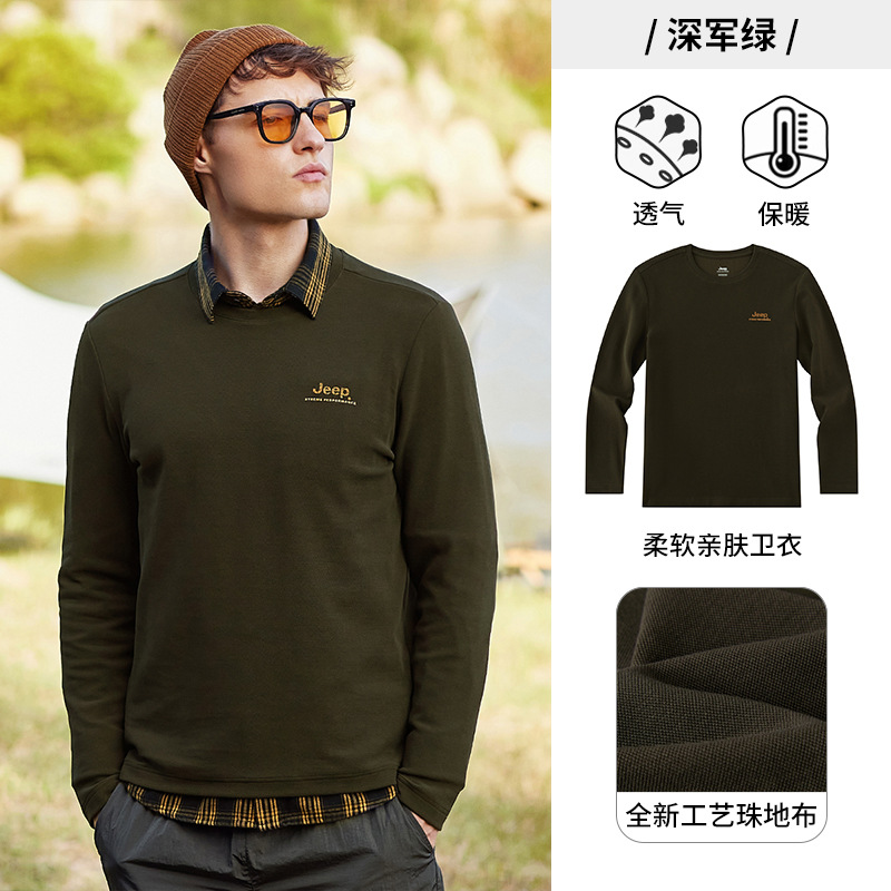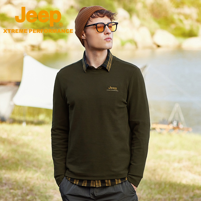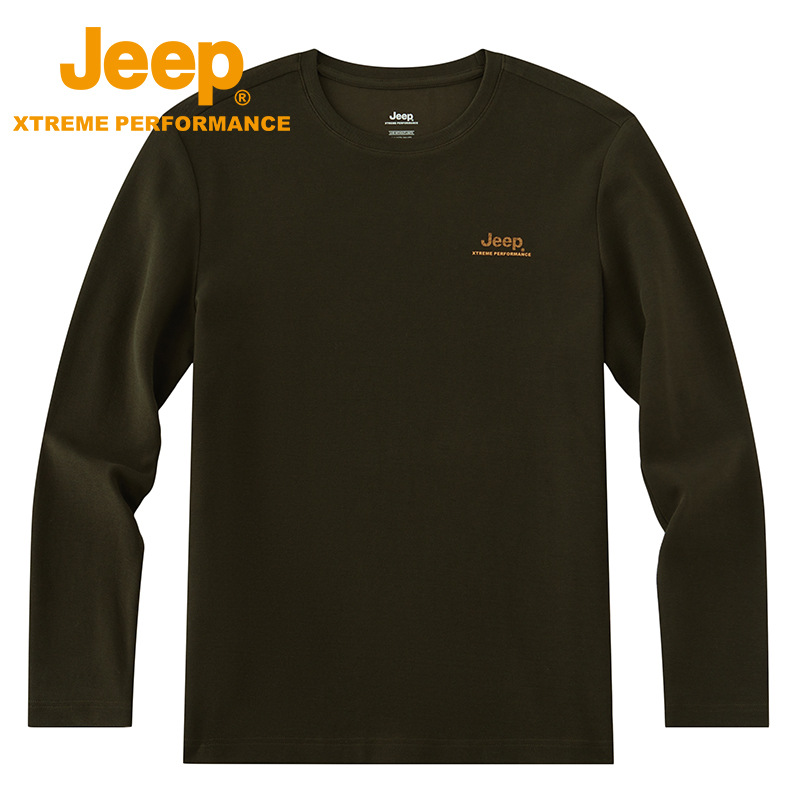 服饰配饰>男装>T恤> JEEP 秋季简约时尚男装舒适休闲圆领打底衫宽松大码男士长袖t恤男J232094531A