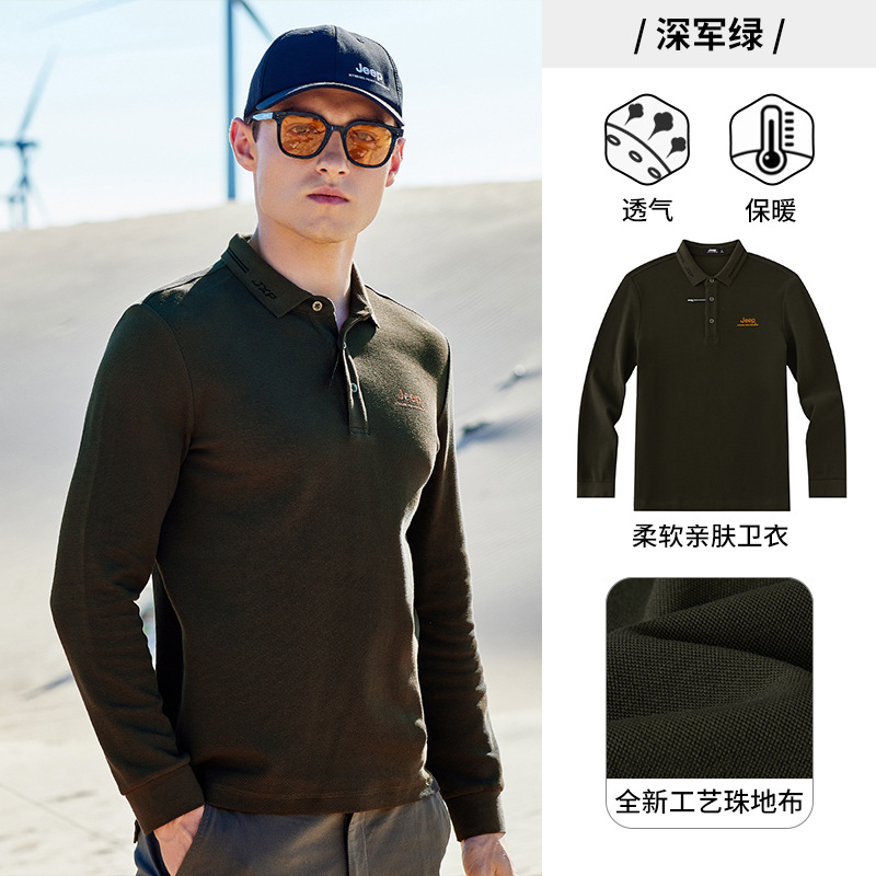 JEEP 长袖T恤秋季男士翻领上衣打底衫宽松大码休闲polo衫秋冬新品J232094532
