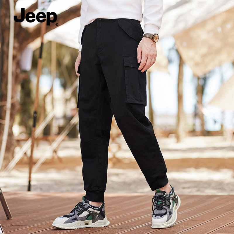 JEEP 秋冬新品工装裤男秋季户外宽松束脚男士运动休闲长裤子多口袋P223MWP517