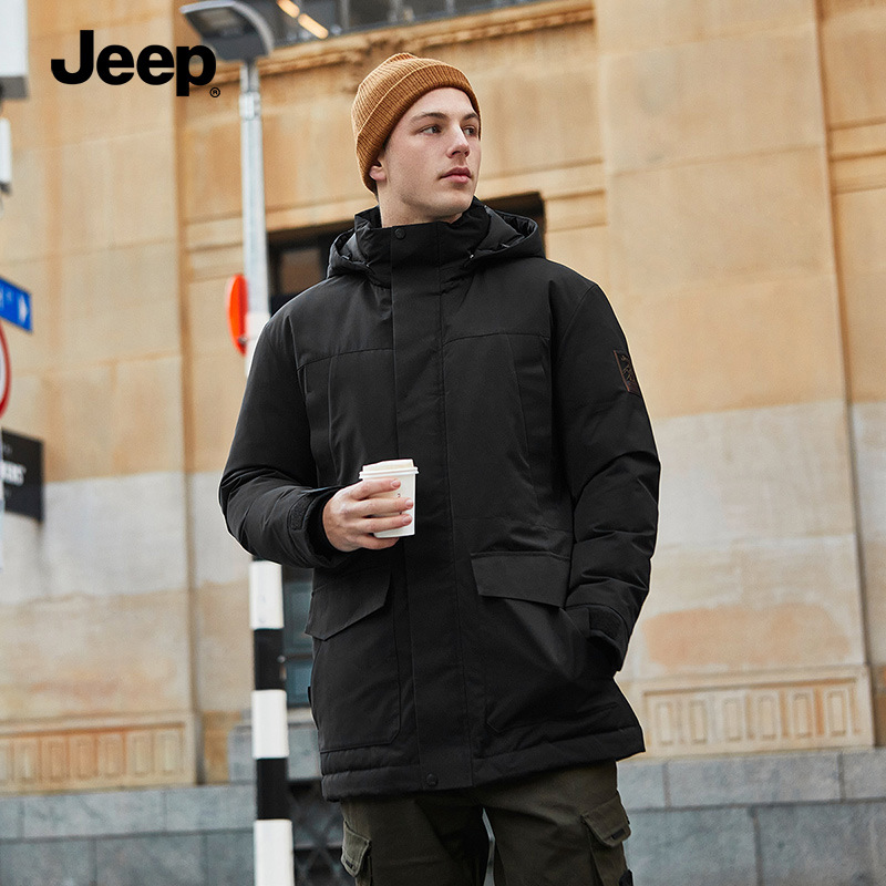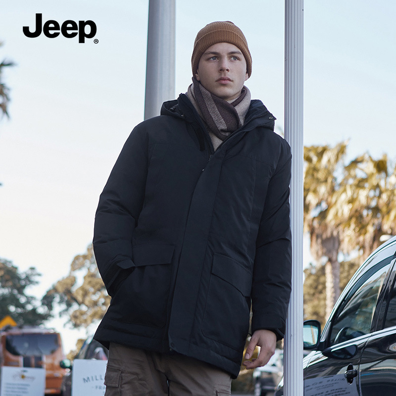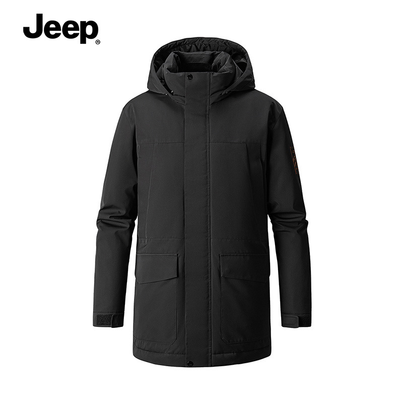 JEEP 纯色中长款羽绒服男冬季中年连帽男款外套秋冬新品保暖外套潮P224MWD717