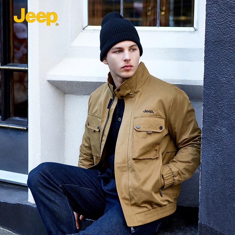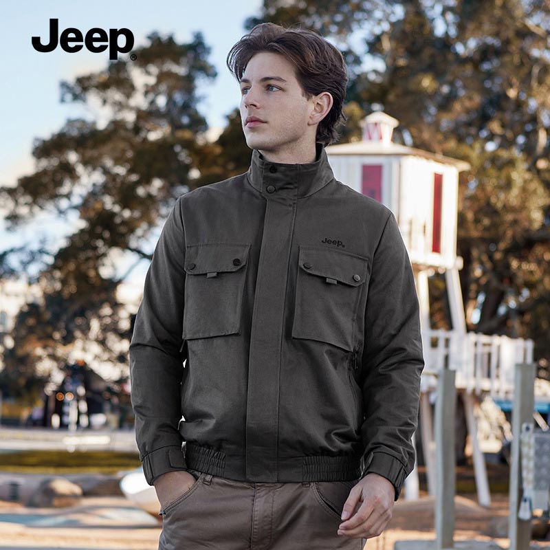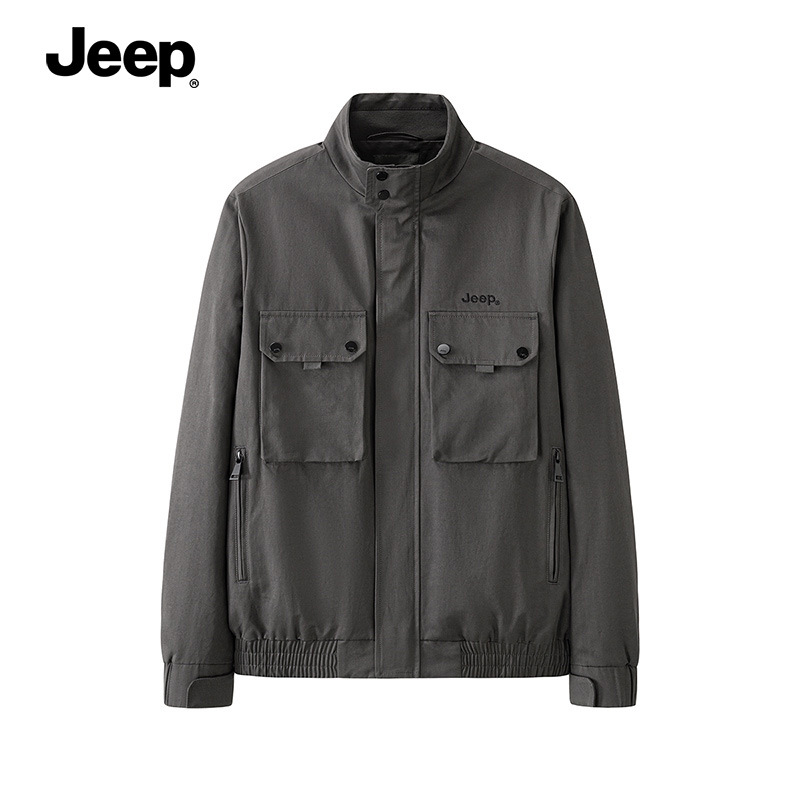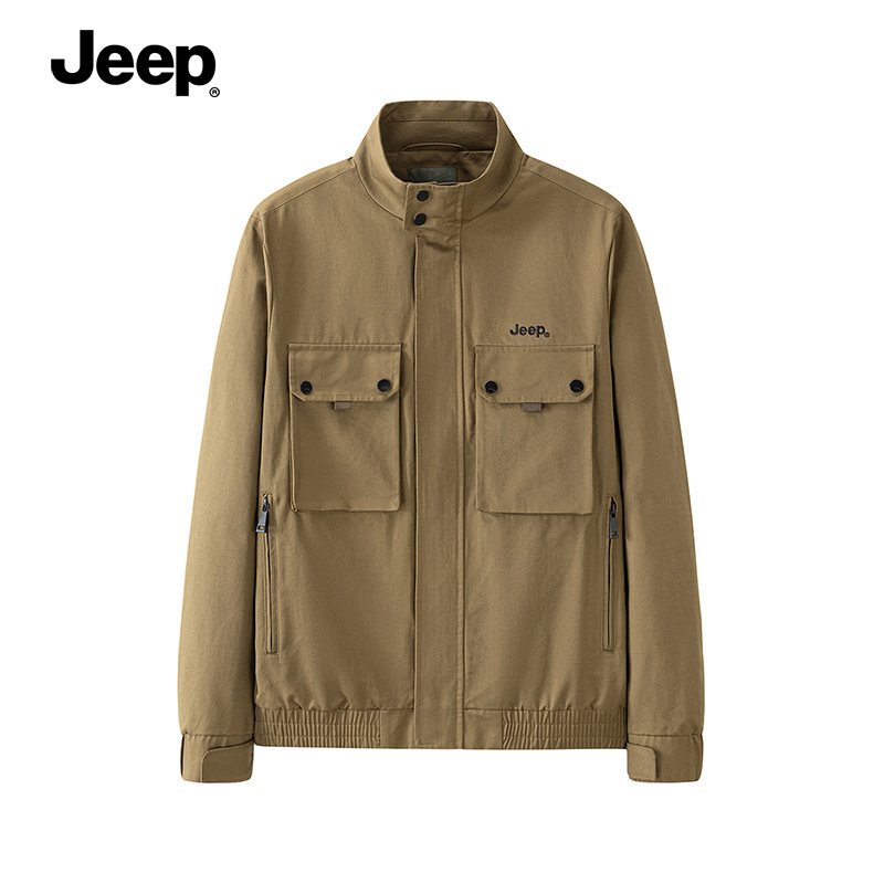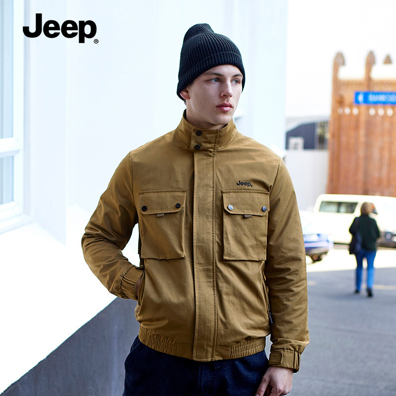 JEEP 复古立领外套秋季新款美式休闲质感立领多口袋高街夹克风衣男P223MWJ508