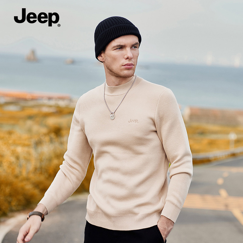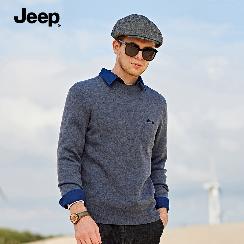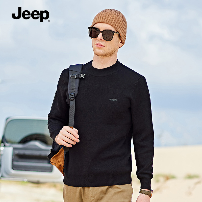 JEEP 秋冬男士加绒纯色圆领百搭宽松运动休闲长袖卫衣男打底衫潮P224MKS725