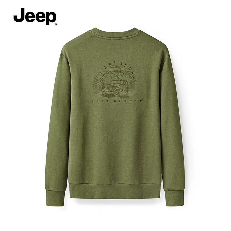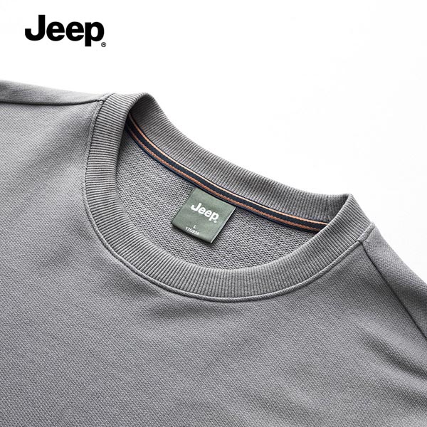 JEEP 质感卫衣男宽松长袖t恤秋季圆领上衣大码纯色打底衫秋冬新品P223MKJ526