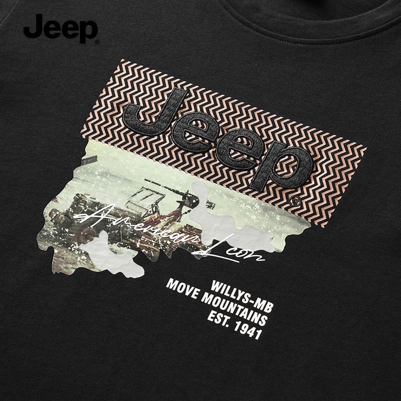 JEEP 男士秋季新款长袖T恤男秋冬宽松圆领百搭潮流复古情侣卫衣P223MKT538