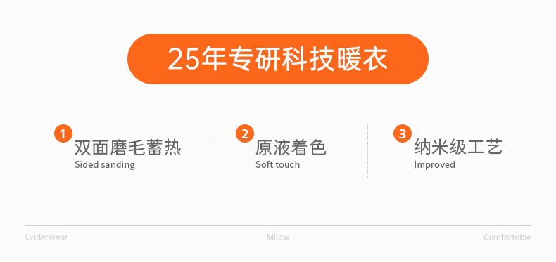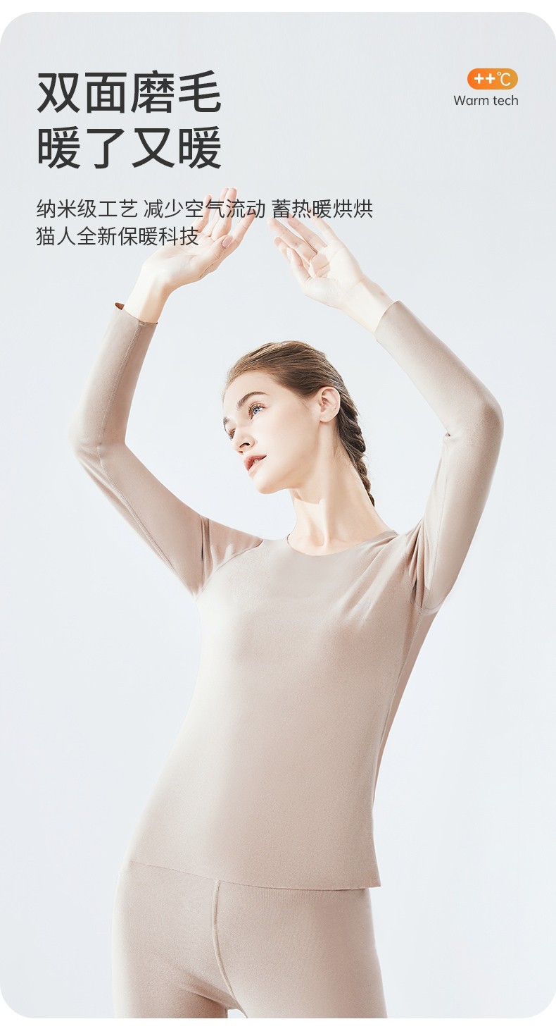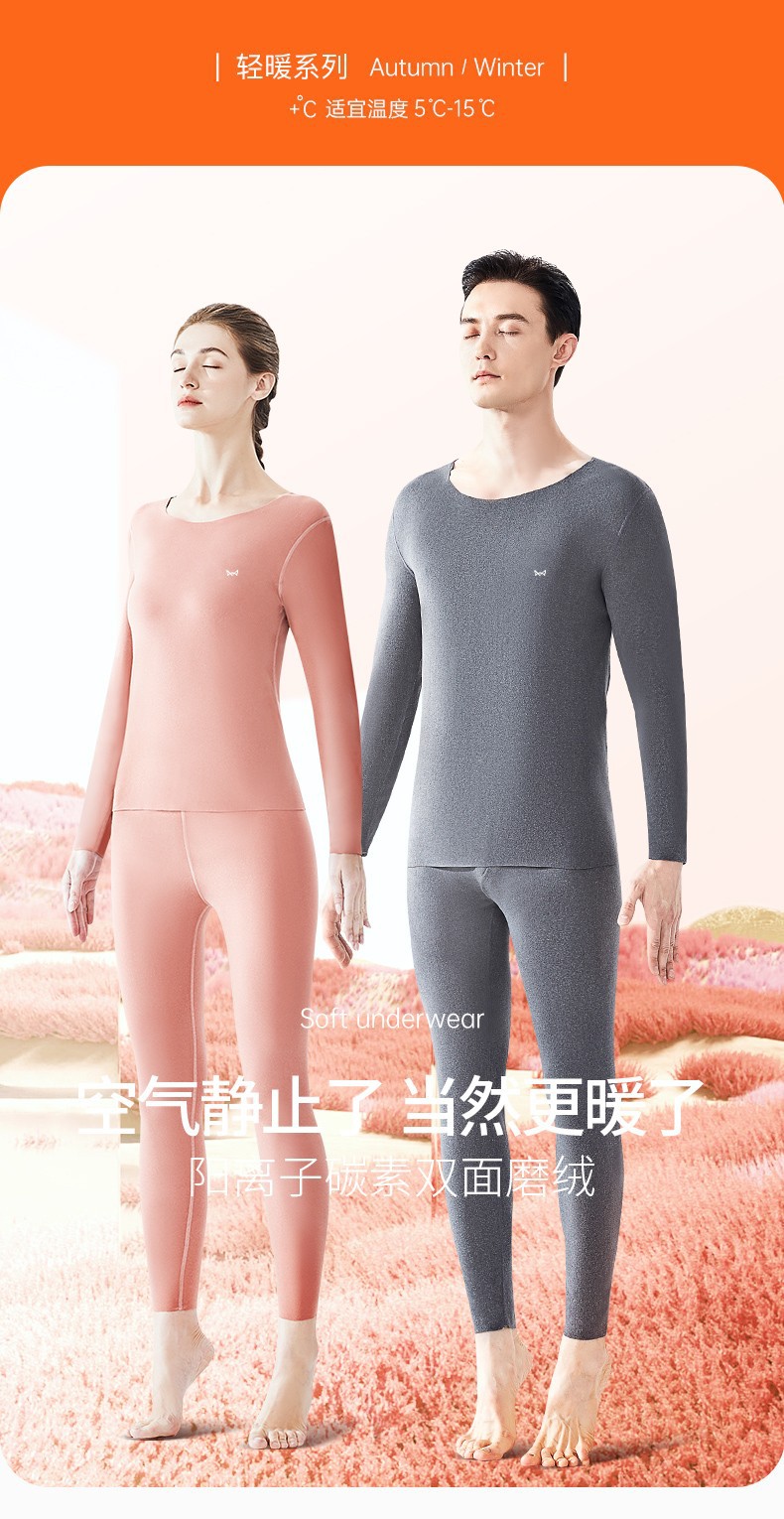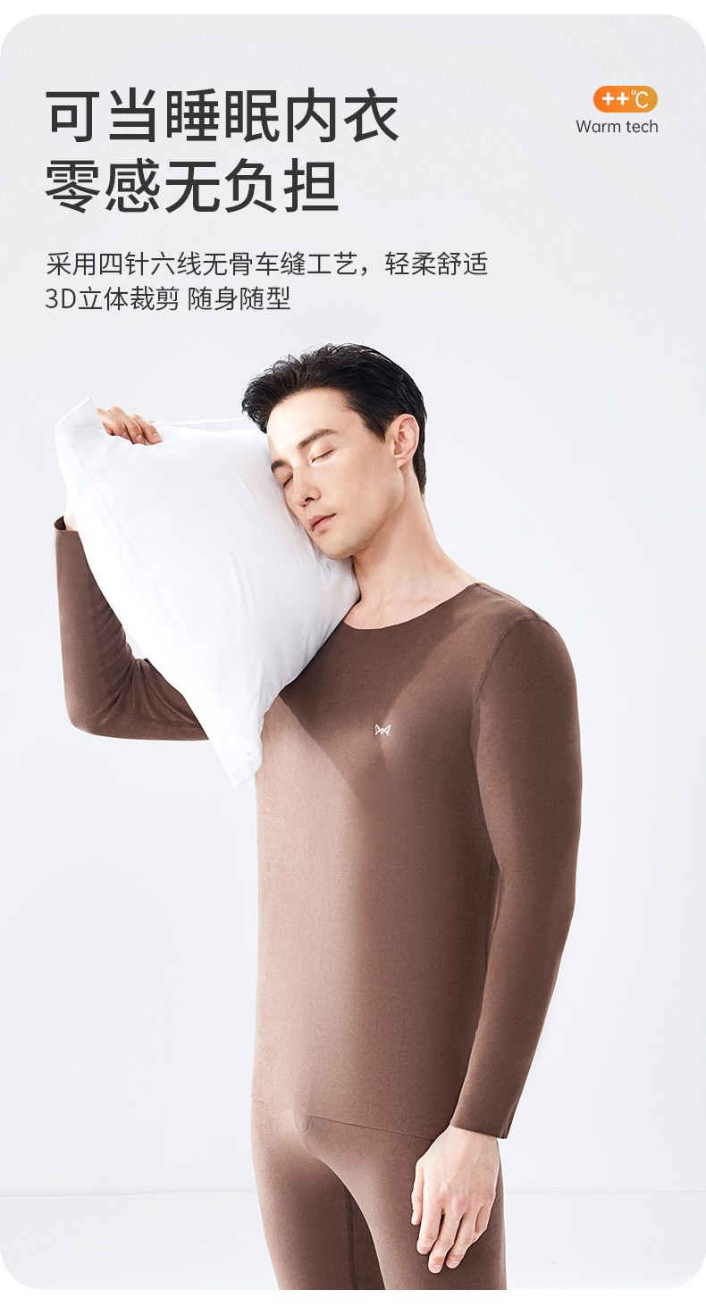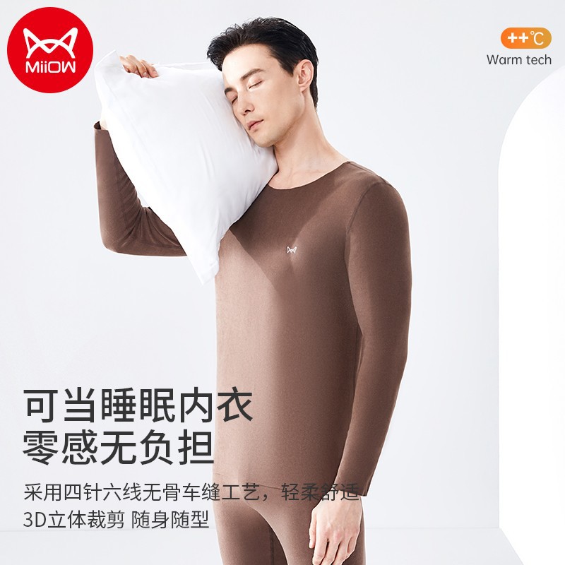 MiiOW/猫人男士保暖内衣男阳离子抗菌无痕秋冬情侣保暖加厚随型裁MR22003
