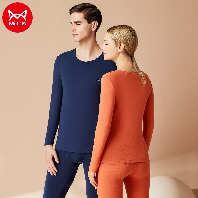 服饰配饰>男装>家居服> MiiOW/猫人保暖内衣男精梳棉圆领秋冬厚款棉秋衣秋裤男内衣套装MR22001