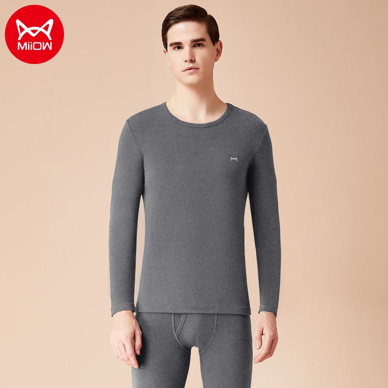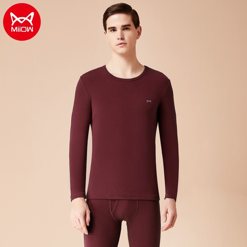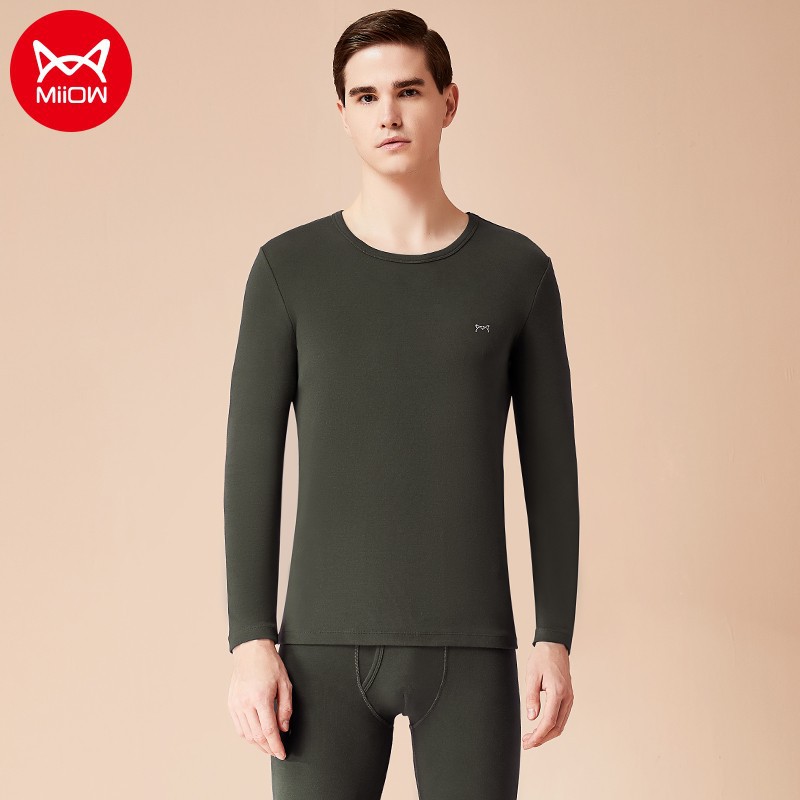 MiiOW/猫人保暖内衣男精梳棉圆领秋冬厚款棉秋衣秋裤男内衣套装MR22001