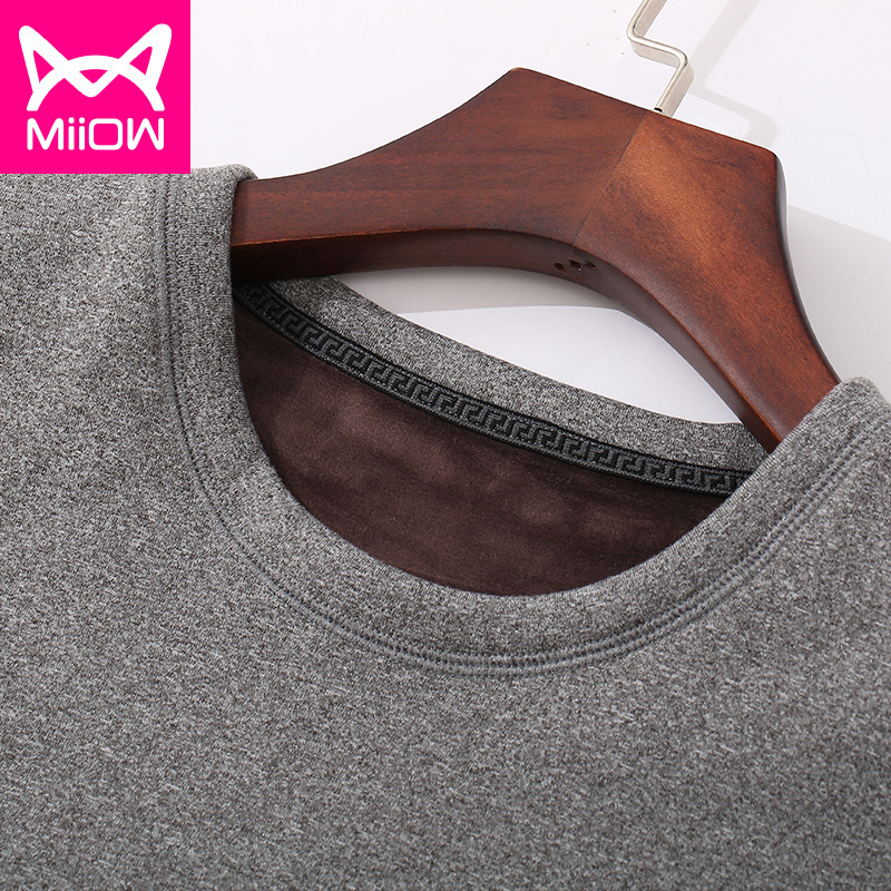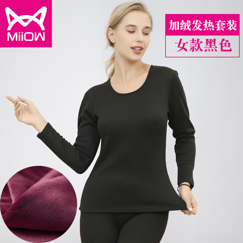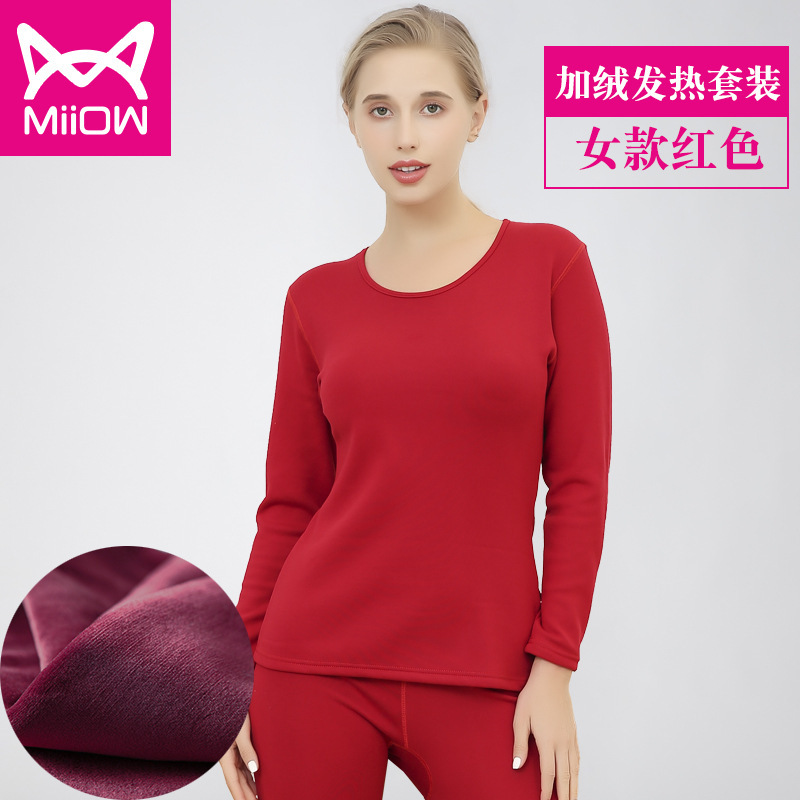 MiiOW/猫人男士保暖内衣套装加厚加绒秋冬季圆领发热青年情侣秋衣秋裤女AM6611