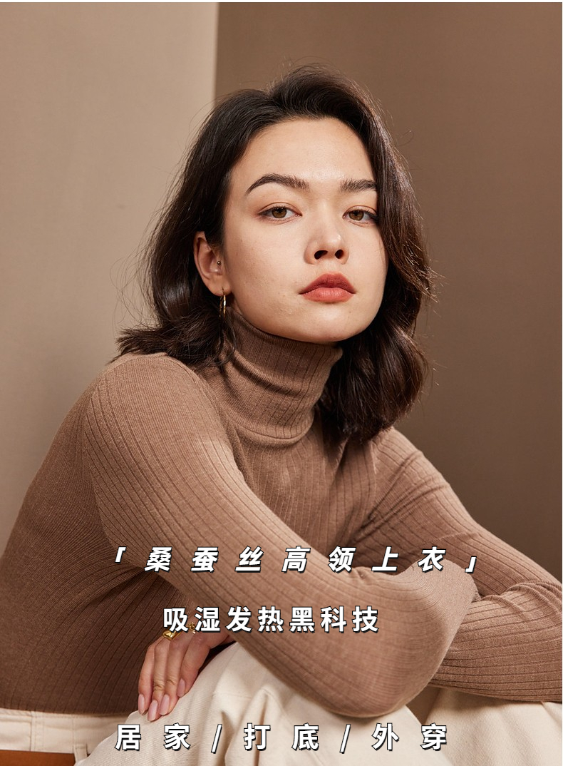 Lomen.DN新品秋衣美雅碧桑蚕丝发热高领薄款打底针织保暖内衣女士LTS2212
