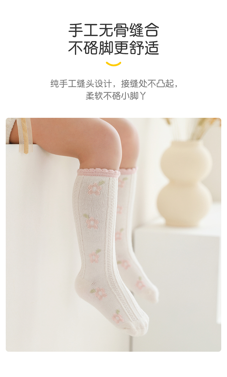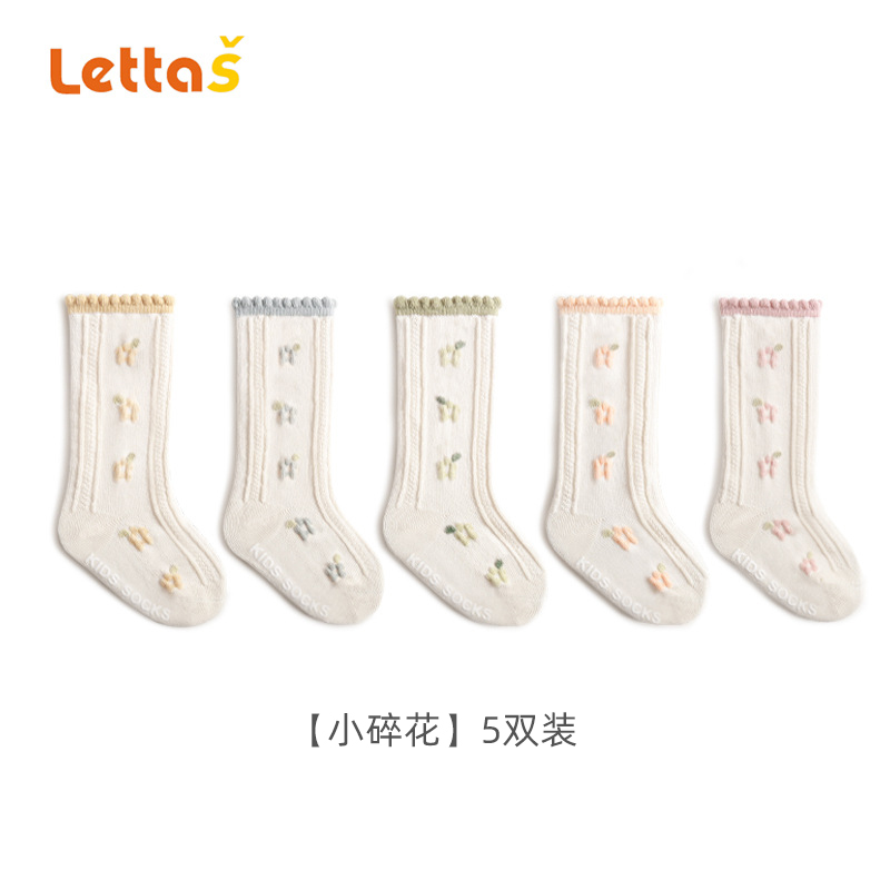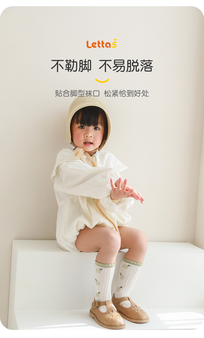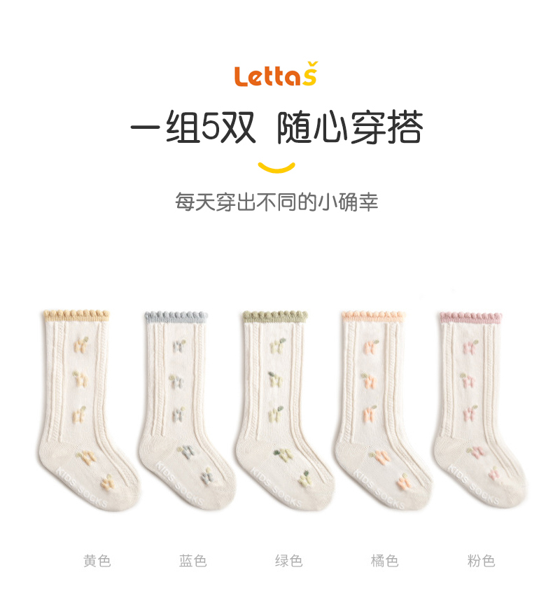 lettas春季新款婴儿长筒袜精梳棉新生儿宝宝高筒防滑袜儿童袜子WAX036
