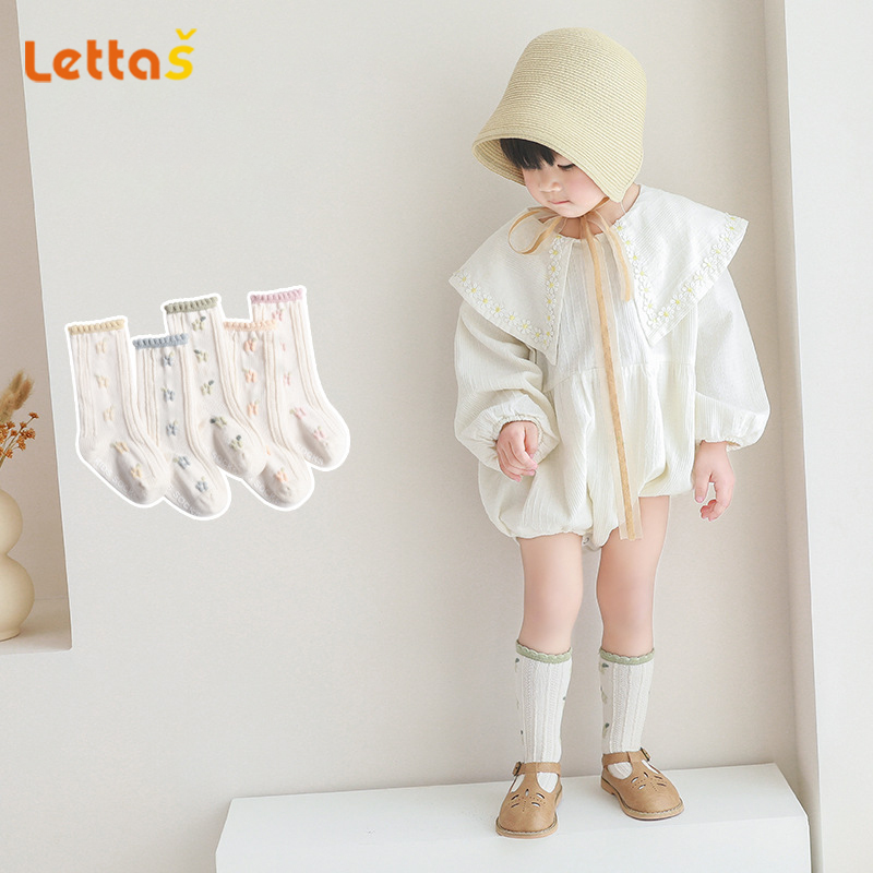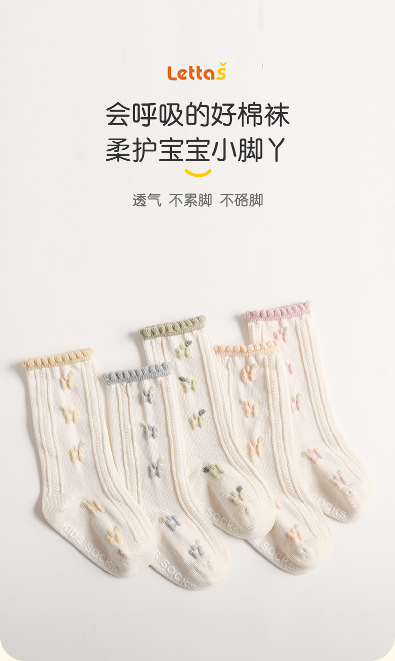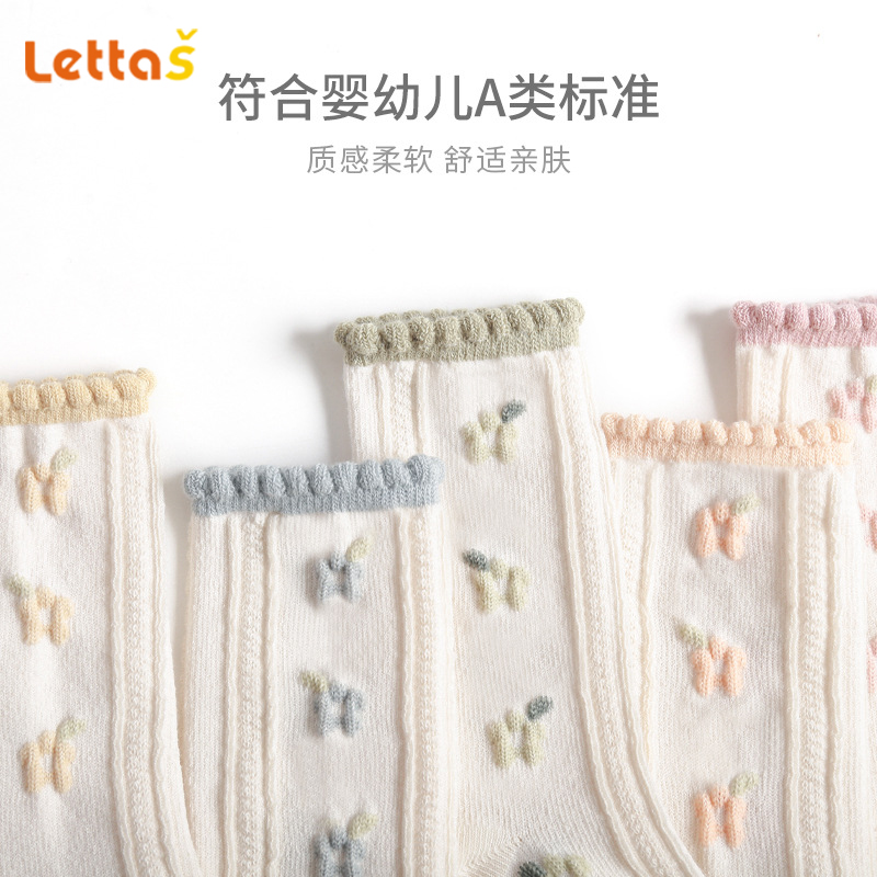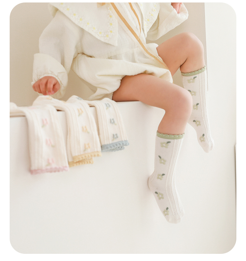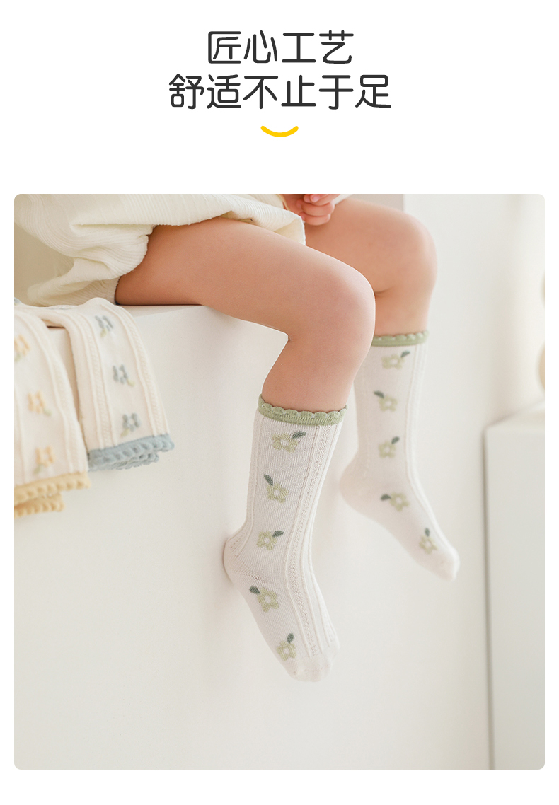 lettas春季新款婴儿长筒袜精梳棉新生儿宝宝高筒防滑袜儿童袜子WAX036