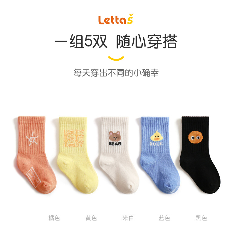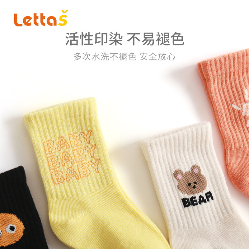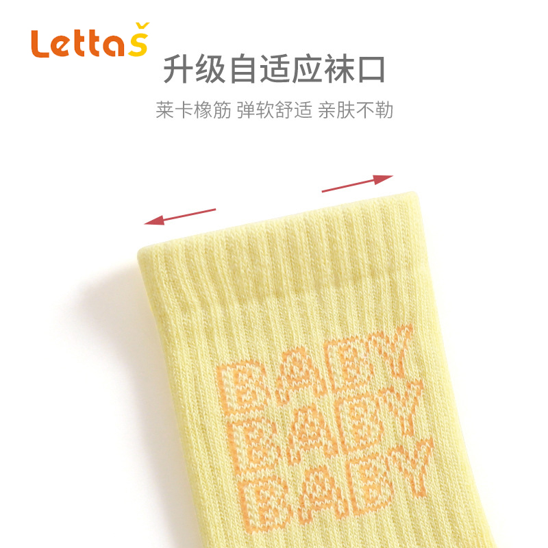 lettas春季新款婴儿袜子精梳棉新生儿宝宝袜双针点胶防滑儿童袜子WAX034