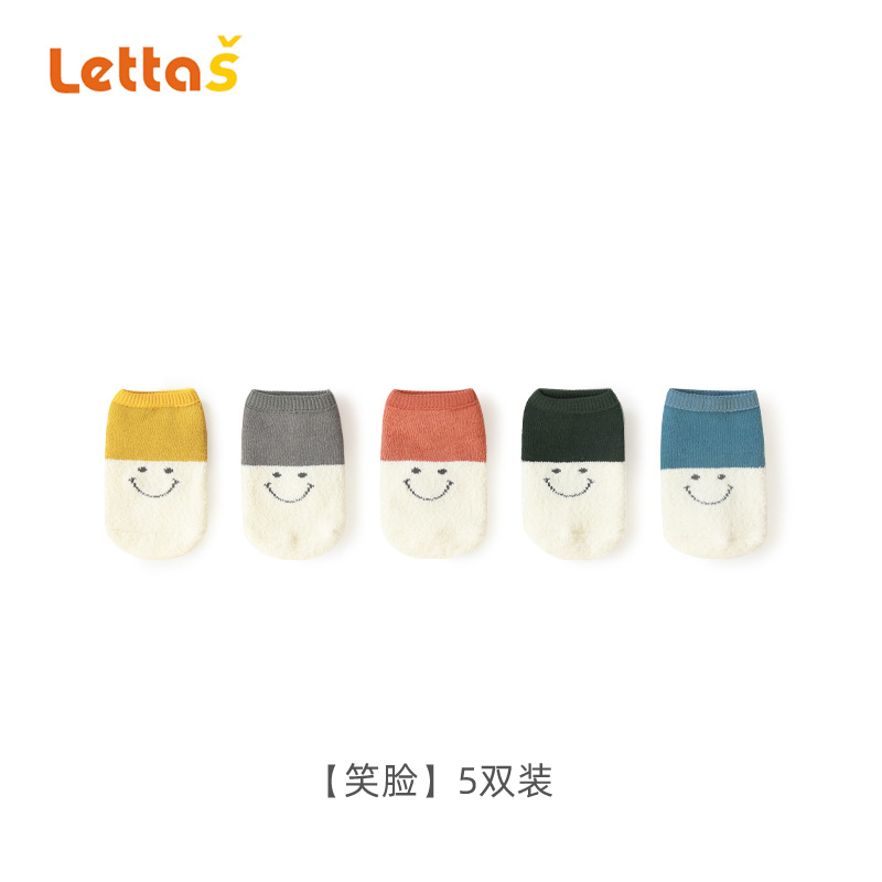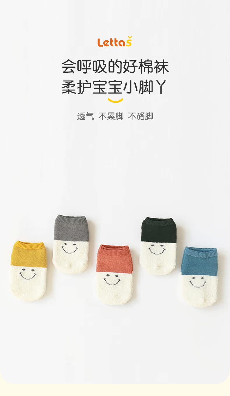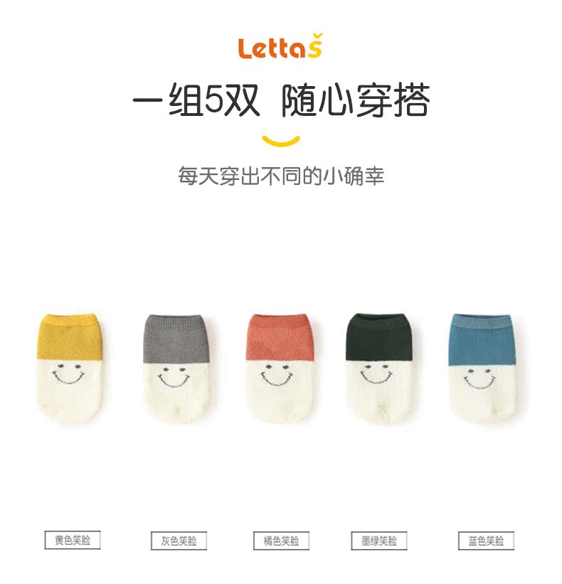 lettas宝宝船袜婴儿纯棉新生儿宝宝袜子可爱卡通笑脸短袜WAX031