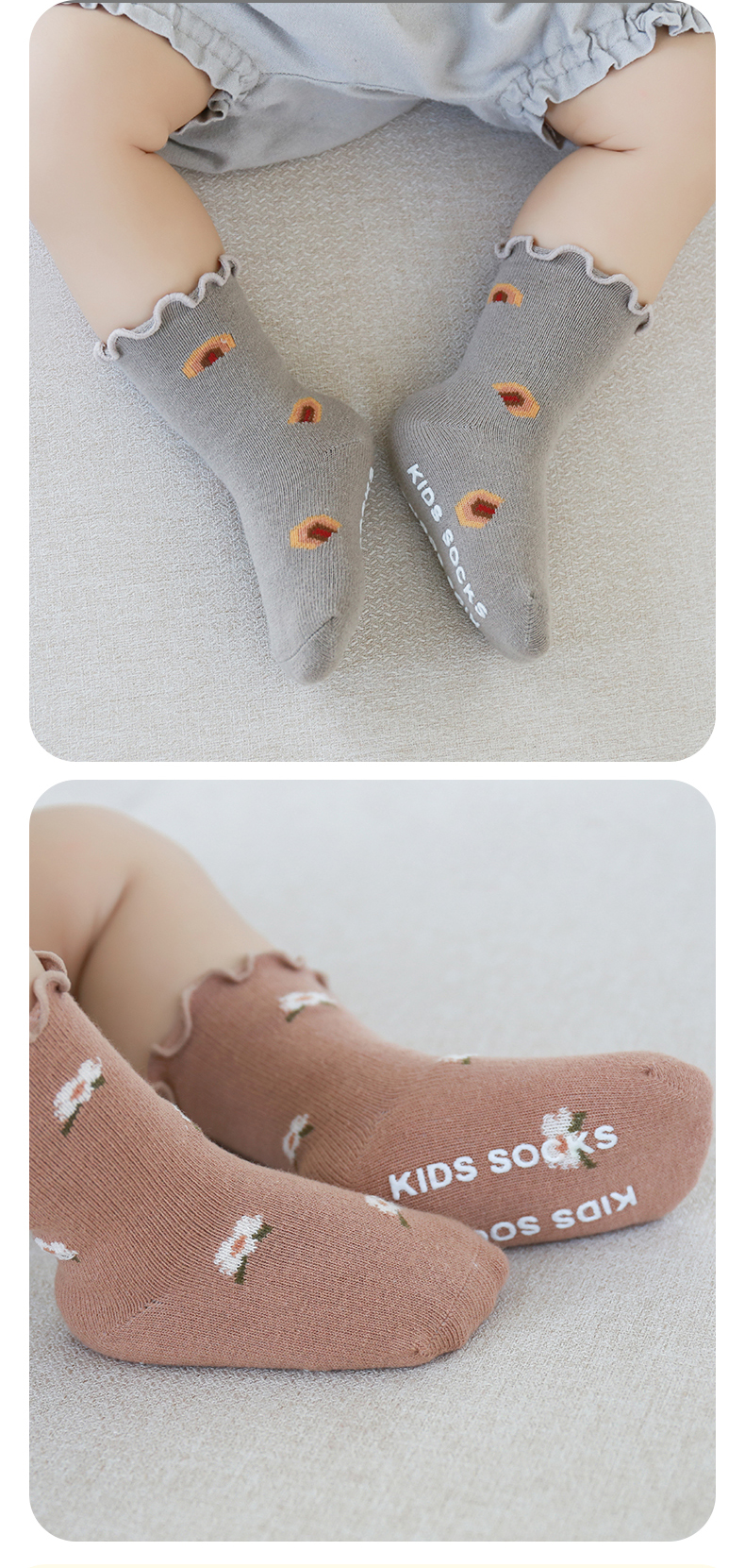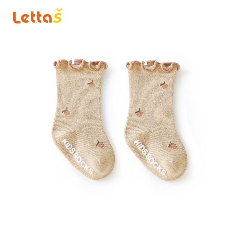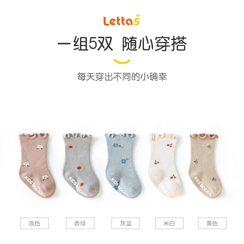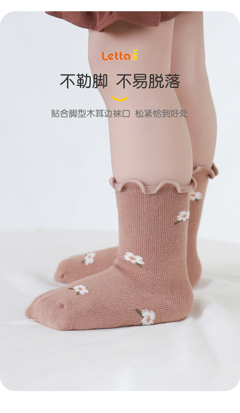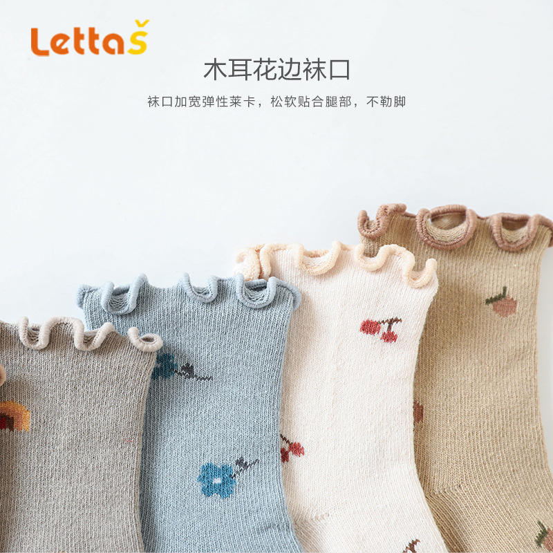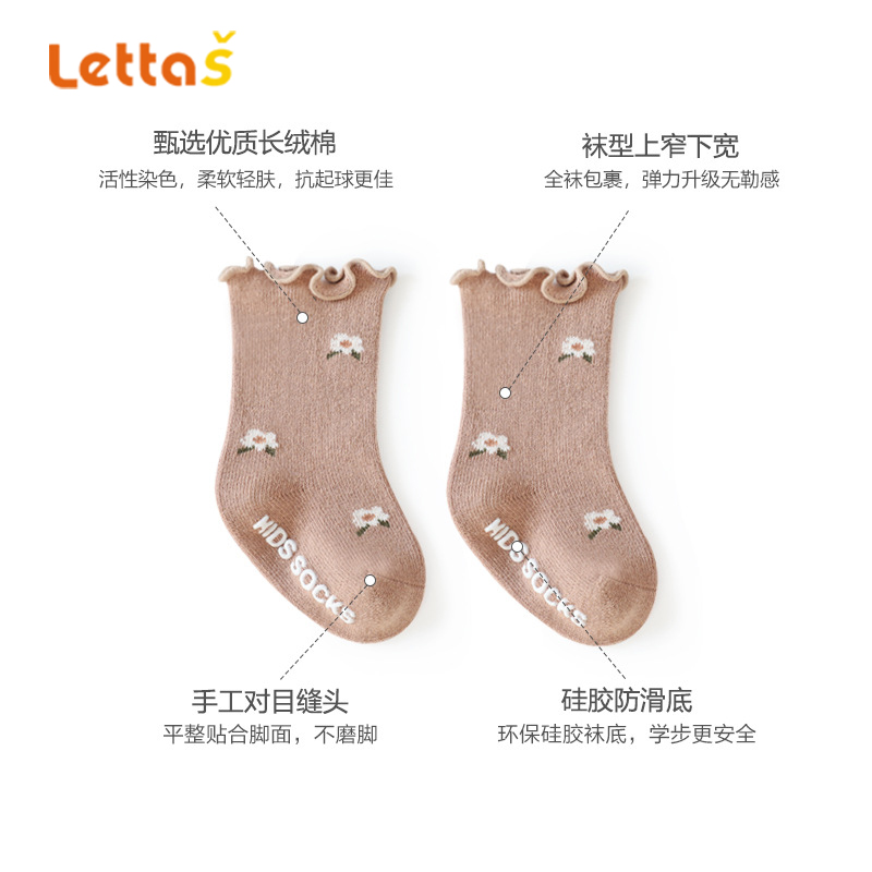 lettas婴儿袜子宝宝学走路地板袜儿童木耳边碎花袜子新生棉质袜子WAX015