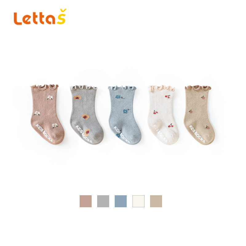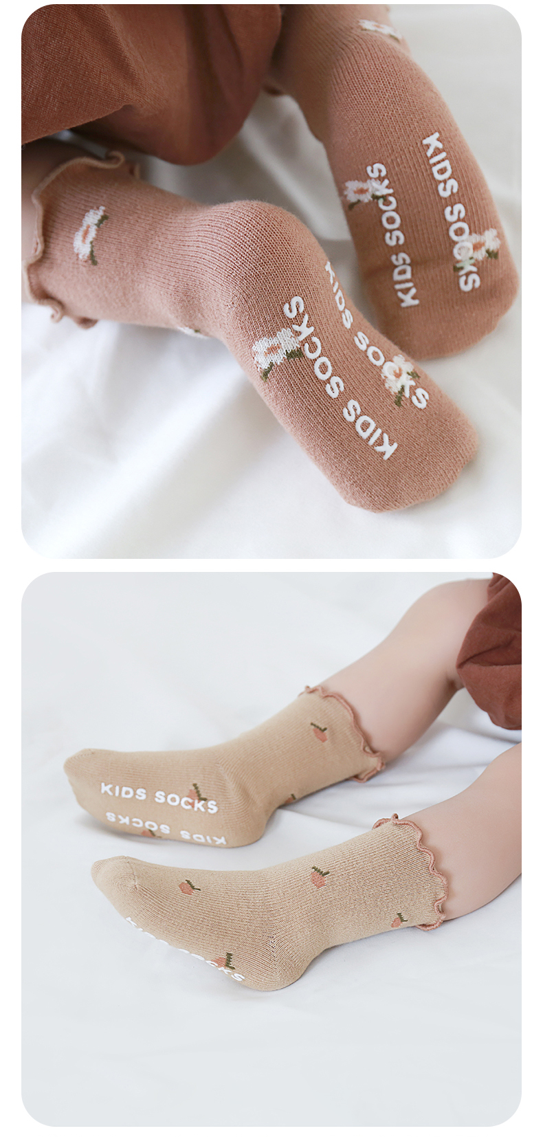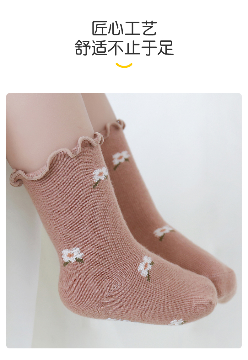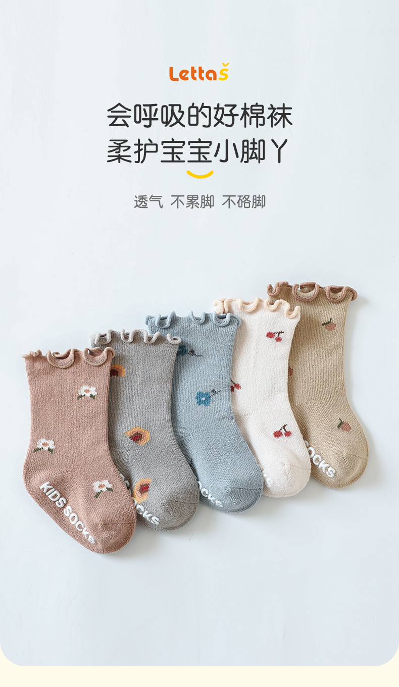 lettas婴儿袜子宝宝学走路地板袜儿童木耳边碎花袜子新生棉质袜子WAX015
