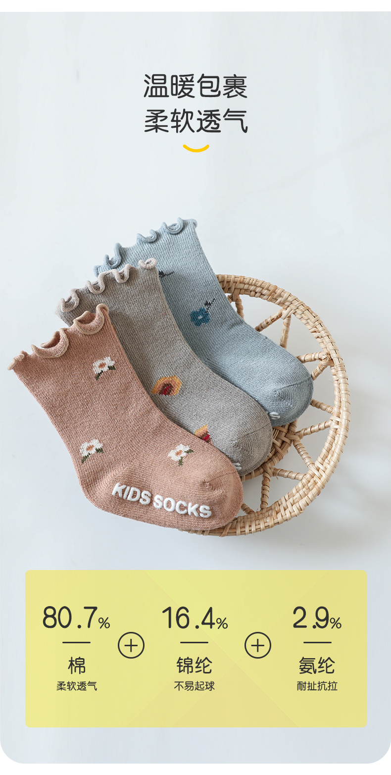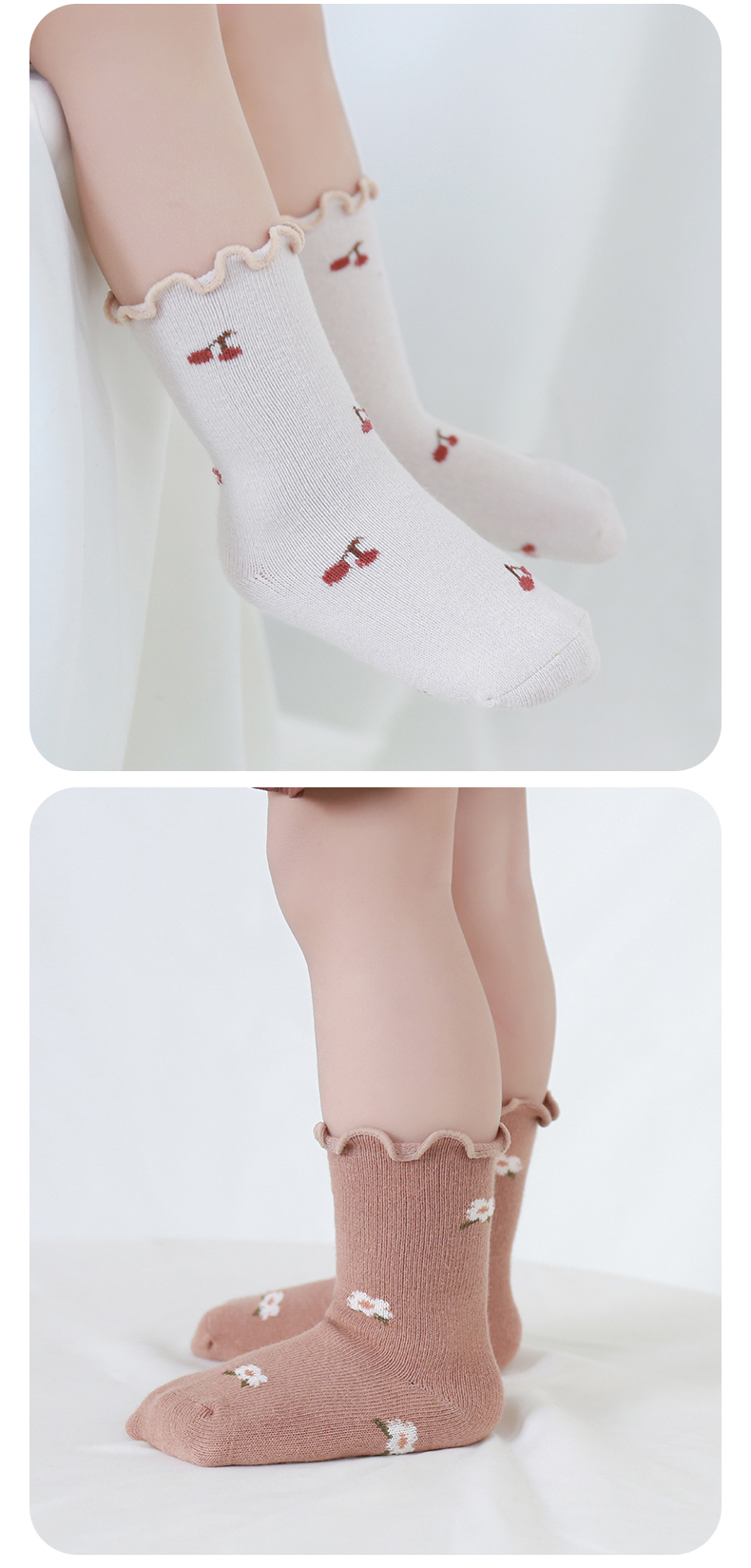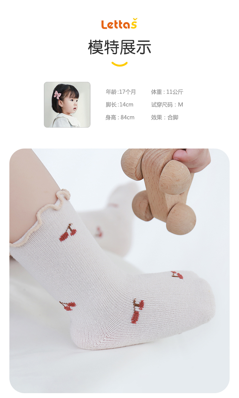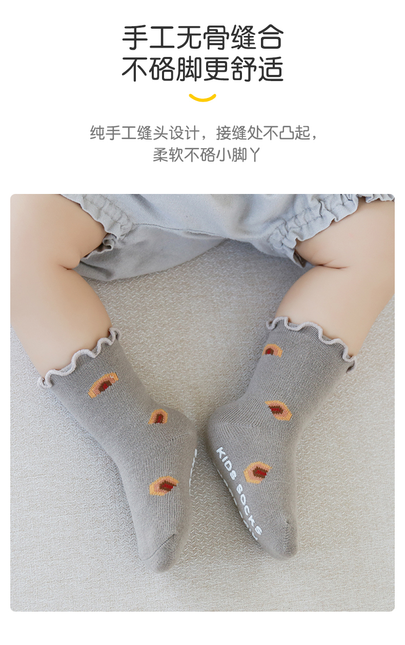 lettas婴儿袜子宝宝学走路地板袜儿童木耳边碎花袜子新生棉质袜子WAX015