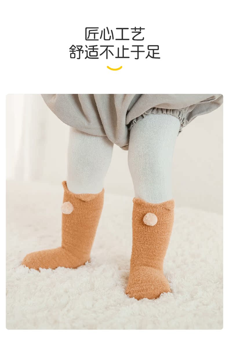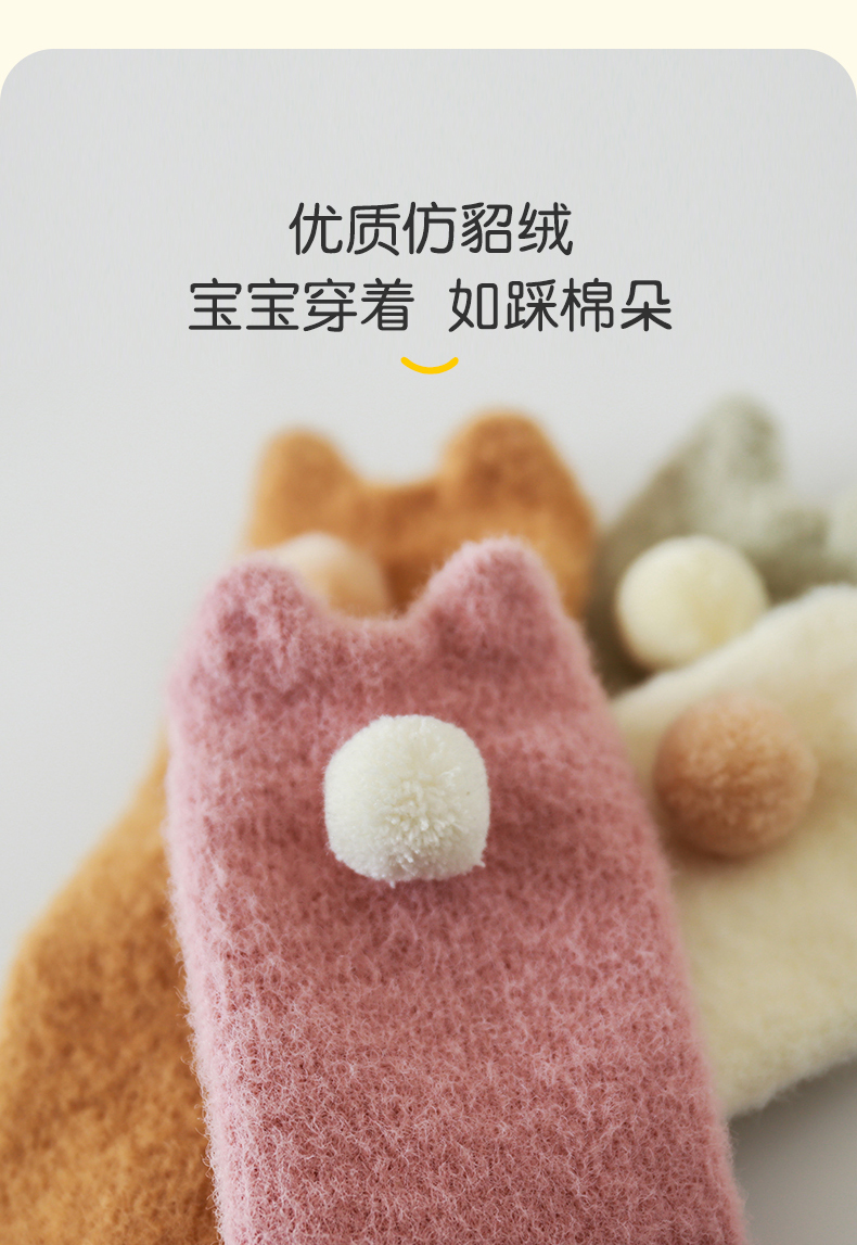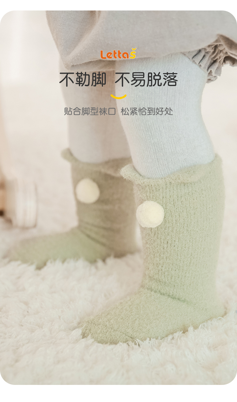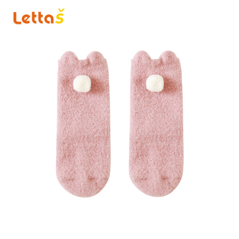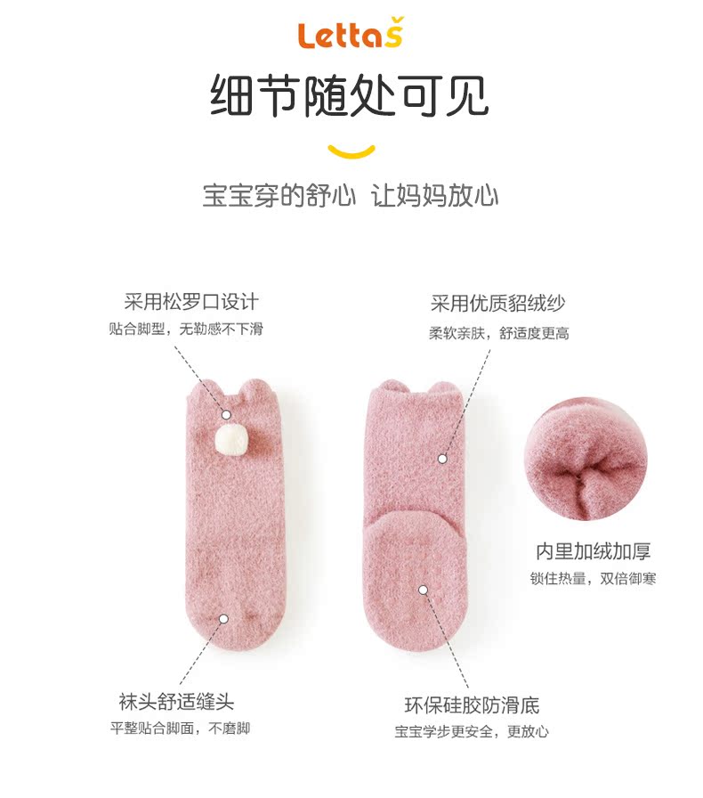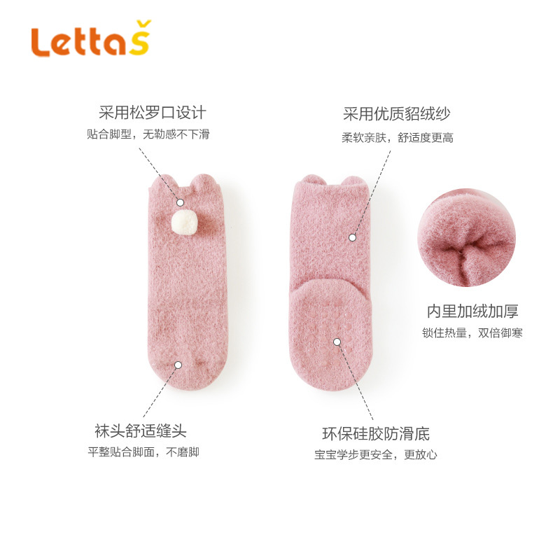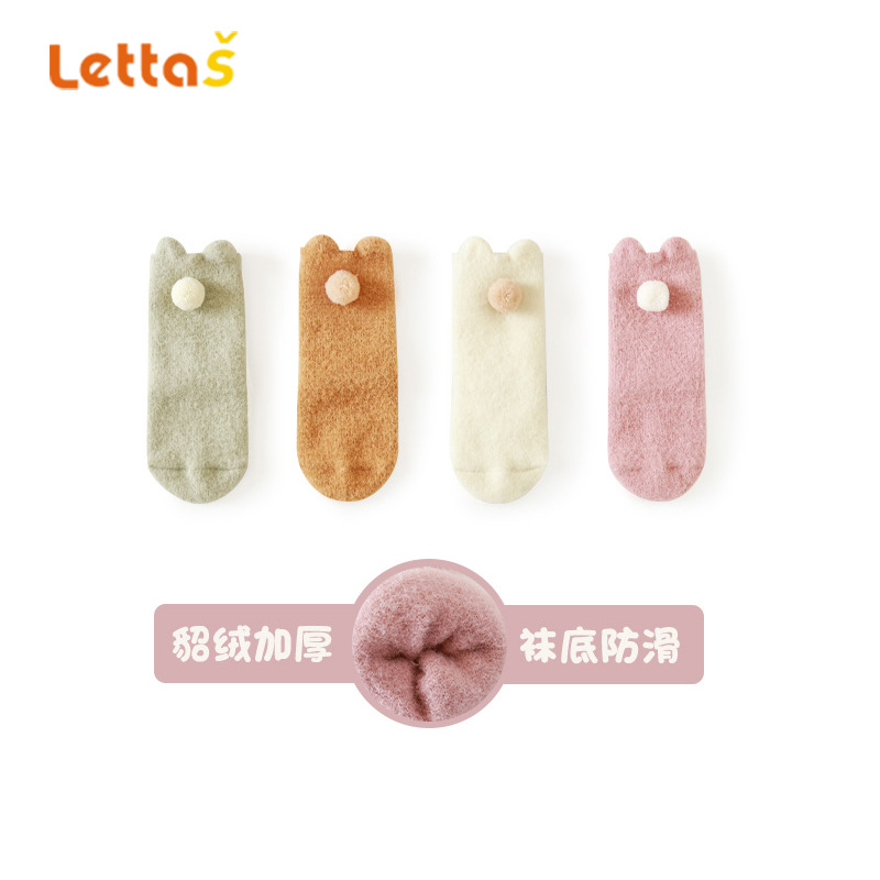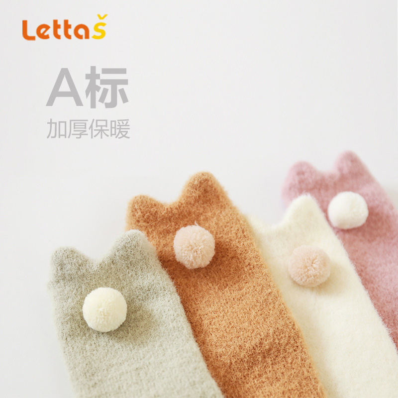 lettas女童袜子冬款新生婴儿中筒加厚加绒仿水貂绒儿童保暖袜宝宝WAX006
