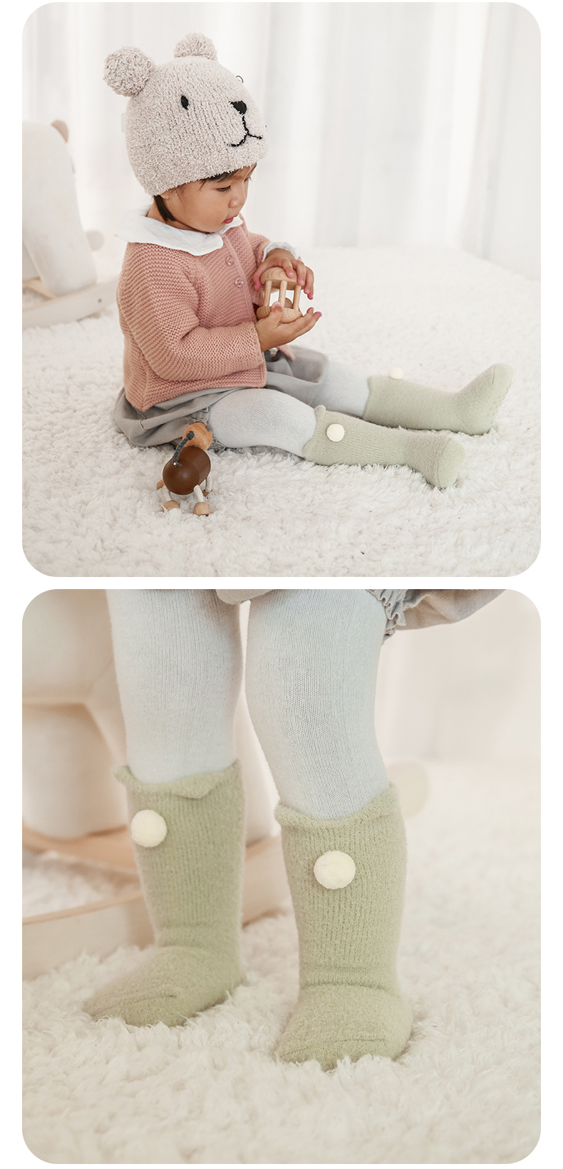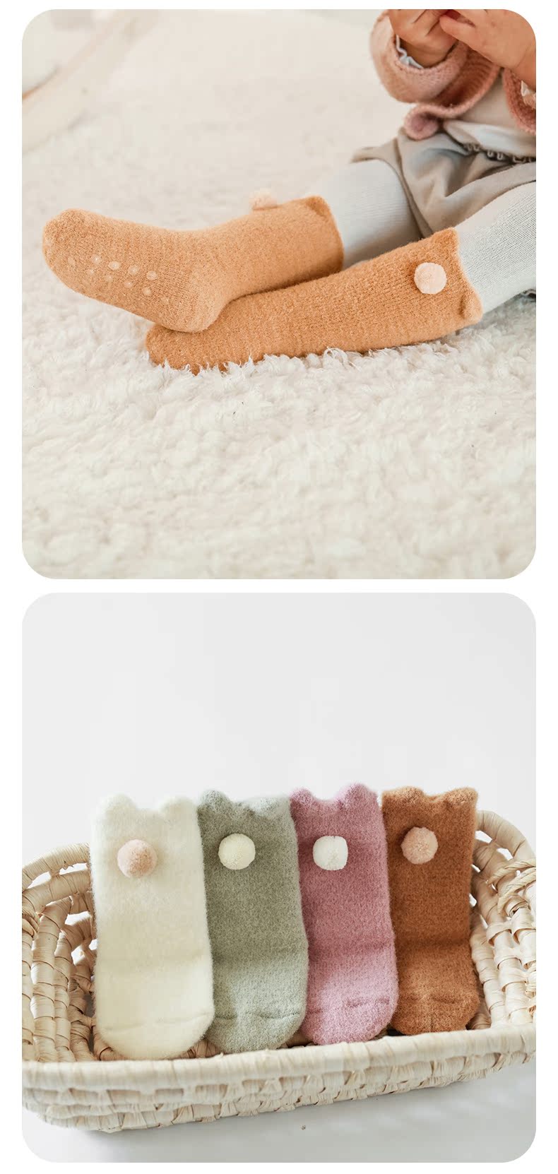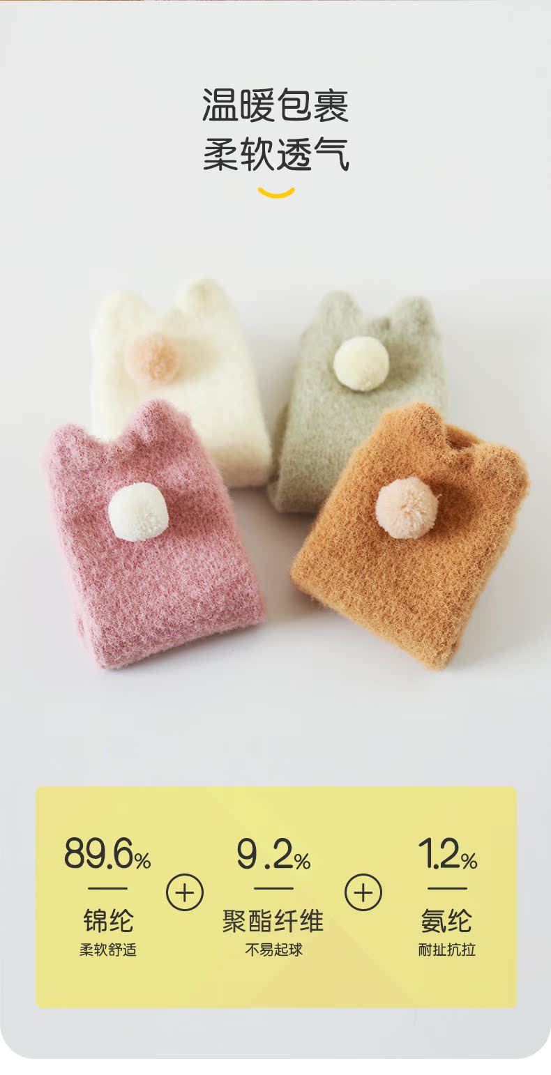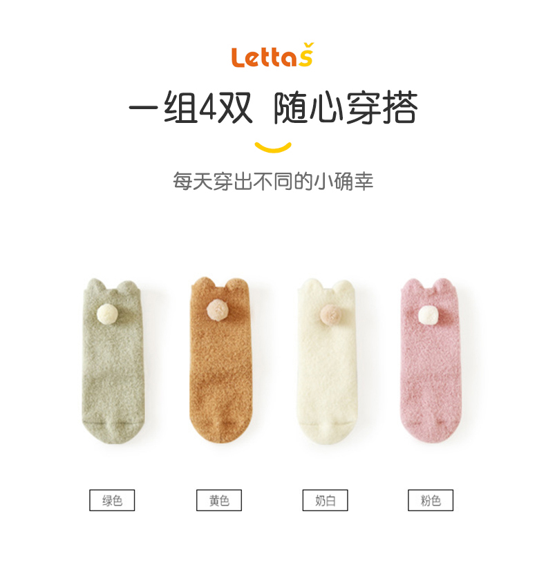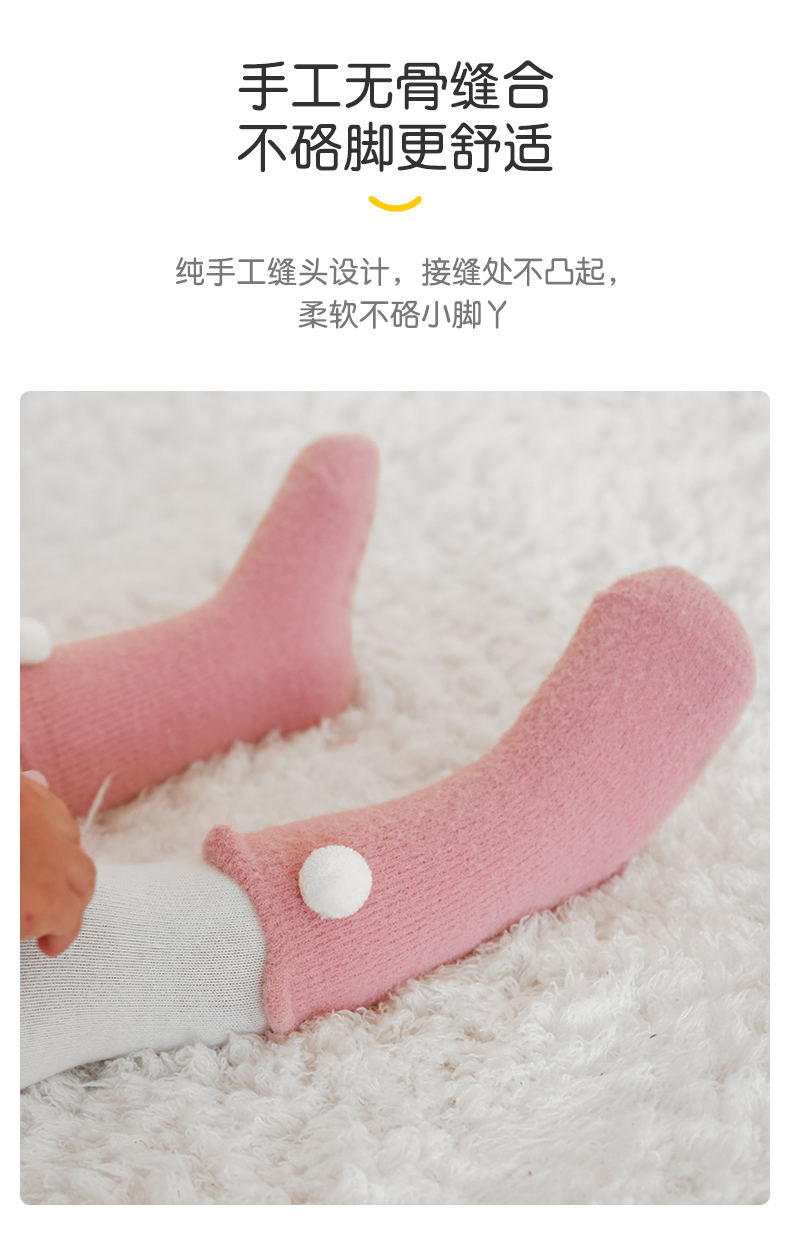 lettas女童袜子冬款新生婴儿中筒加厚加绒仿水貂绒儿童保暖袜宝宝WAX006