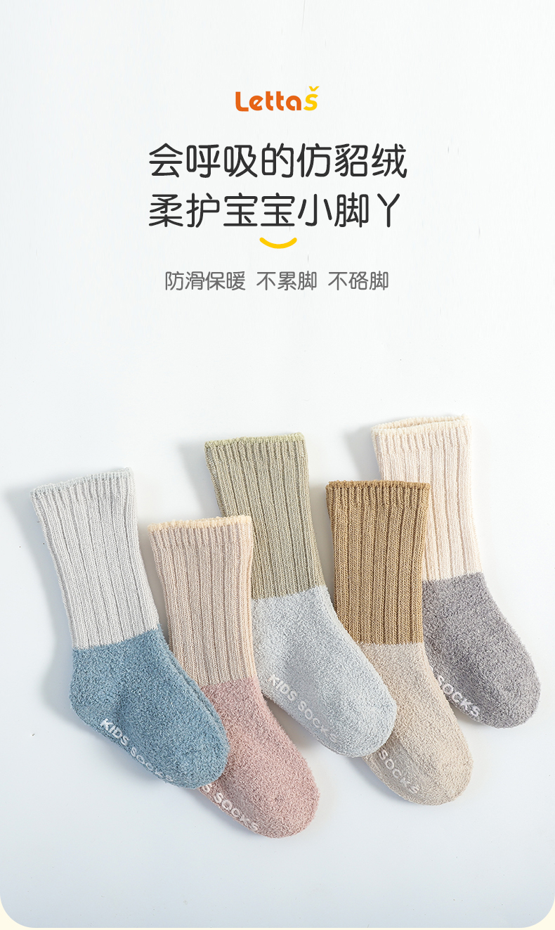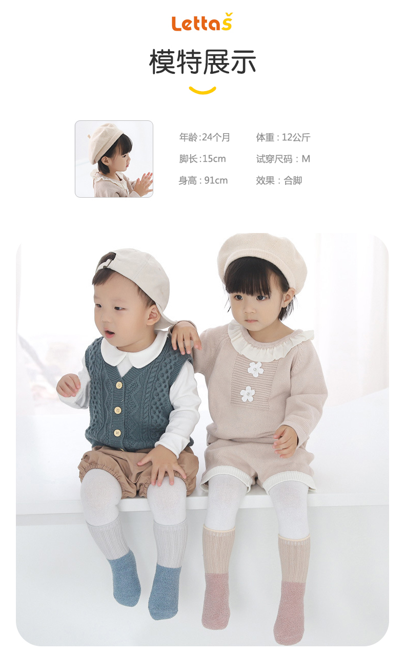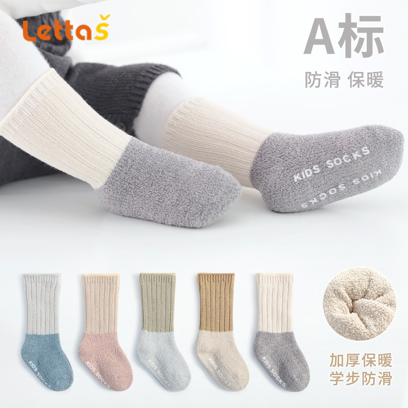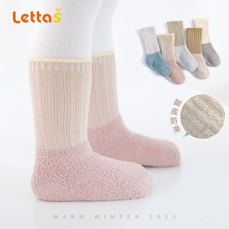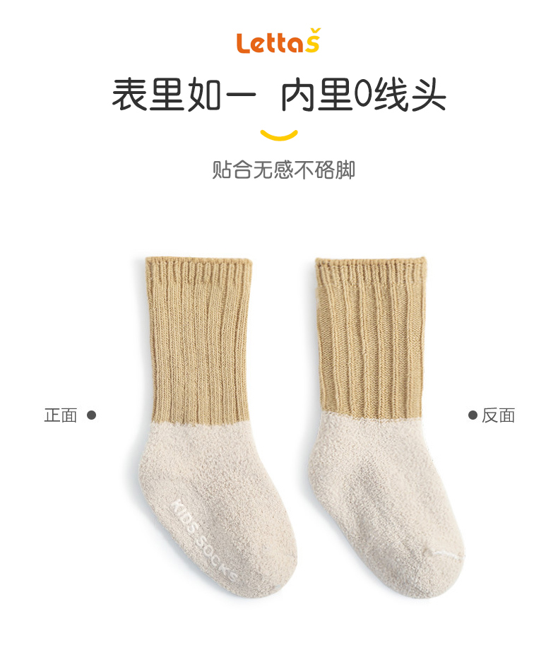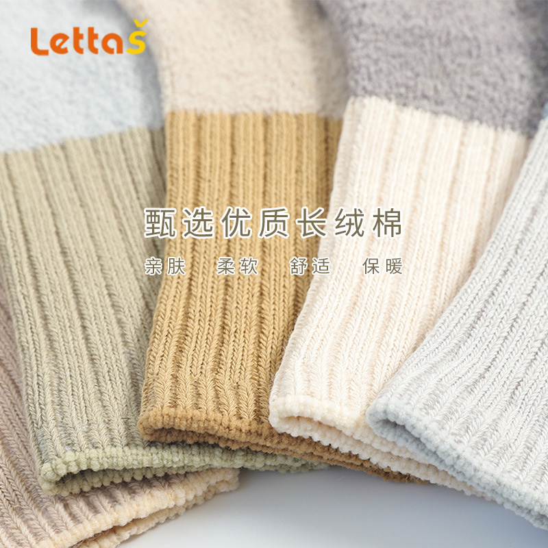 lettas新生婴儿袜子冬季0一3月宝宝袜子秋冬纯棉加厚加绒中筒保暖WAX005