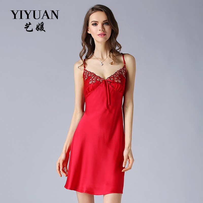 艺媛真丝睡衣女士深V吊带裙春夏桑蚕丝绸性感气质睡裙修身家居服 D33159