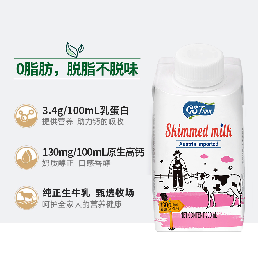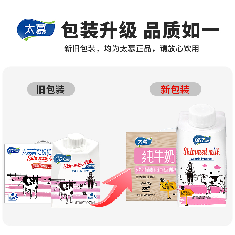 太慕 奥地利原装进口 脱脂纯牛奶 200ml*10盒/箱