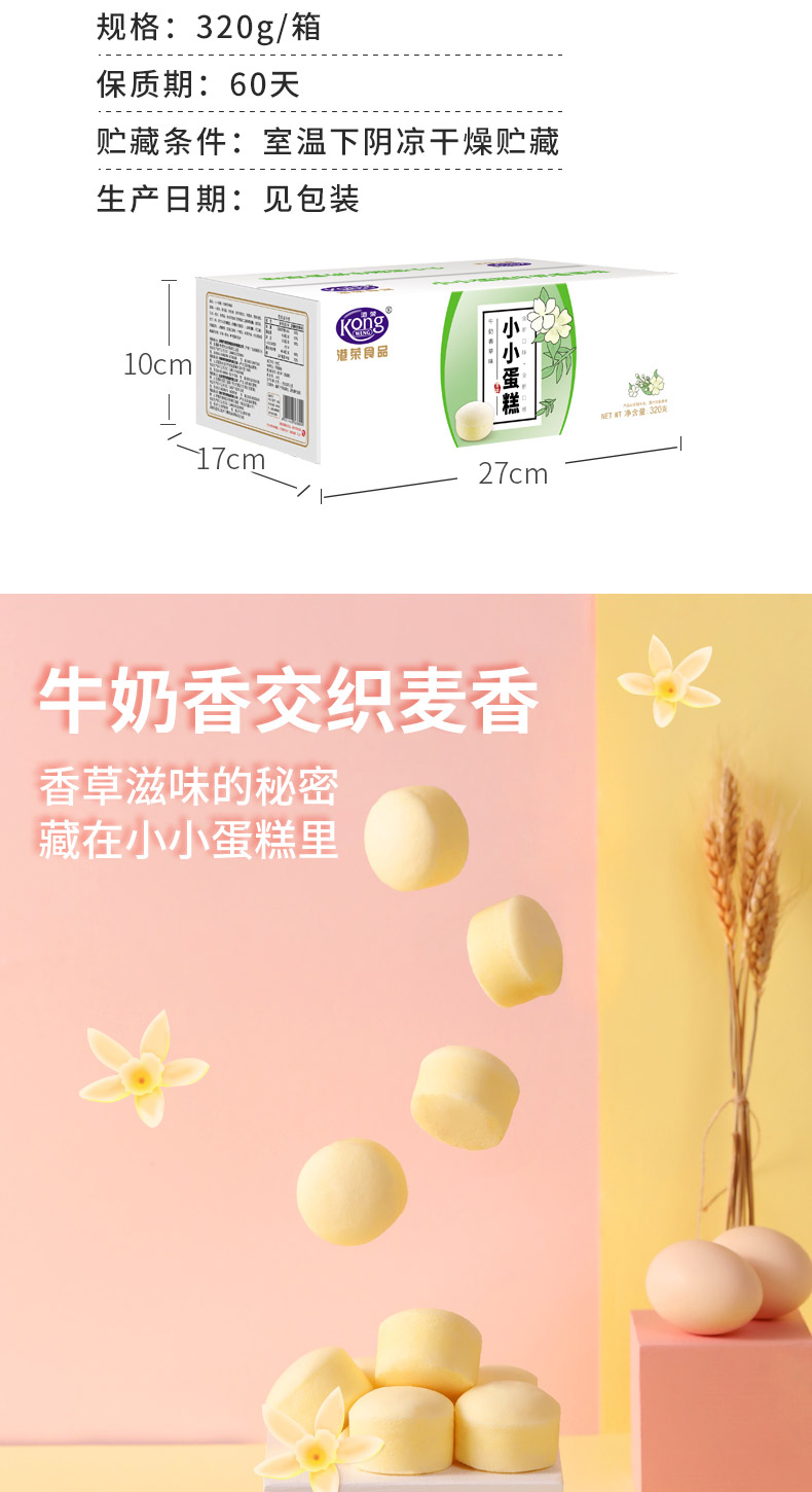 港荣蒸蛋糕营养早餐休闲零食网红小吃糕点点心一箱320小香草+480蓝莓