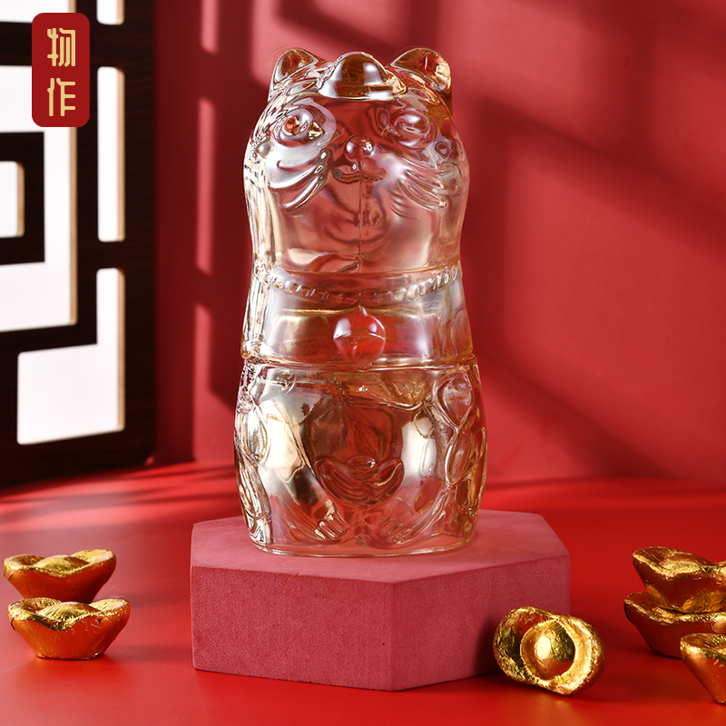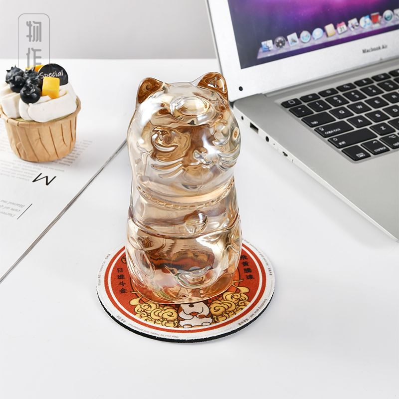 物作 水杯家用玻璃杯客厅待客泡茶杯套装原创个性创意招财猫杯 8006 银色猫杯