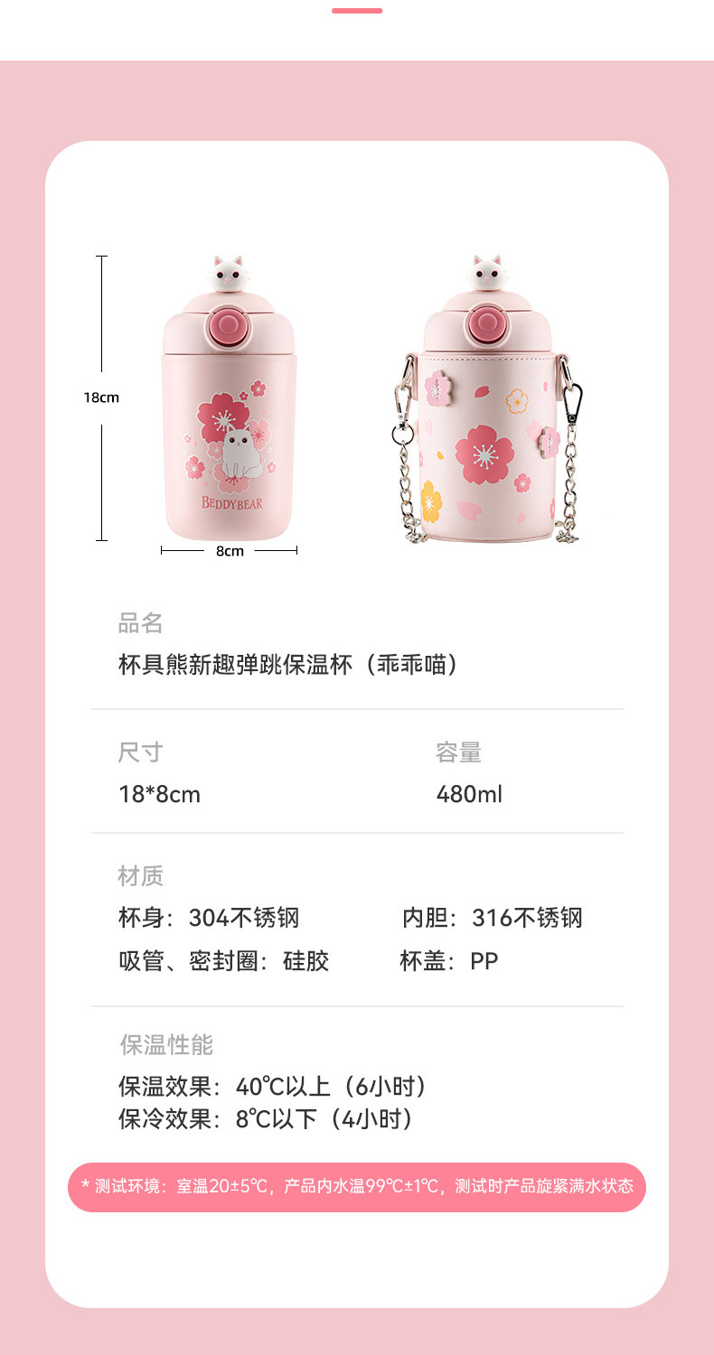 杯具熊新趣保温杯女高颜值吸管杯316不锈钢学生便携水杯成人新款