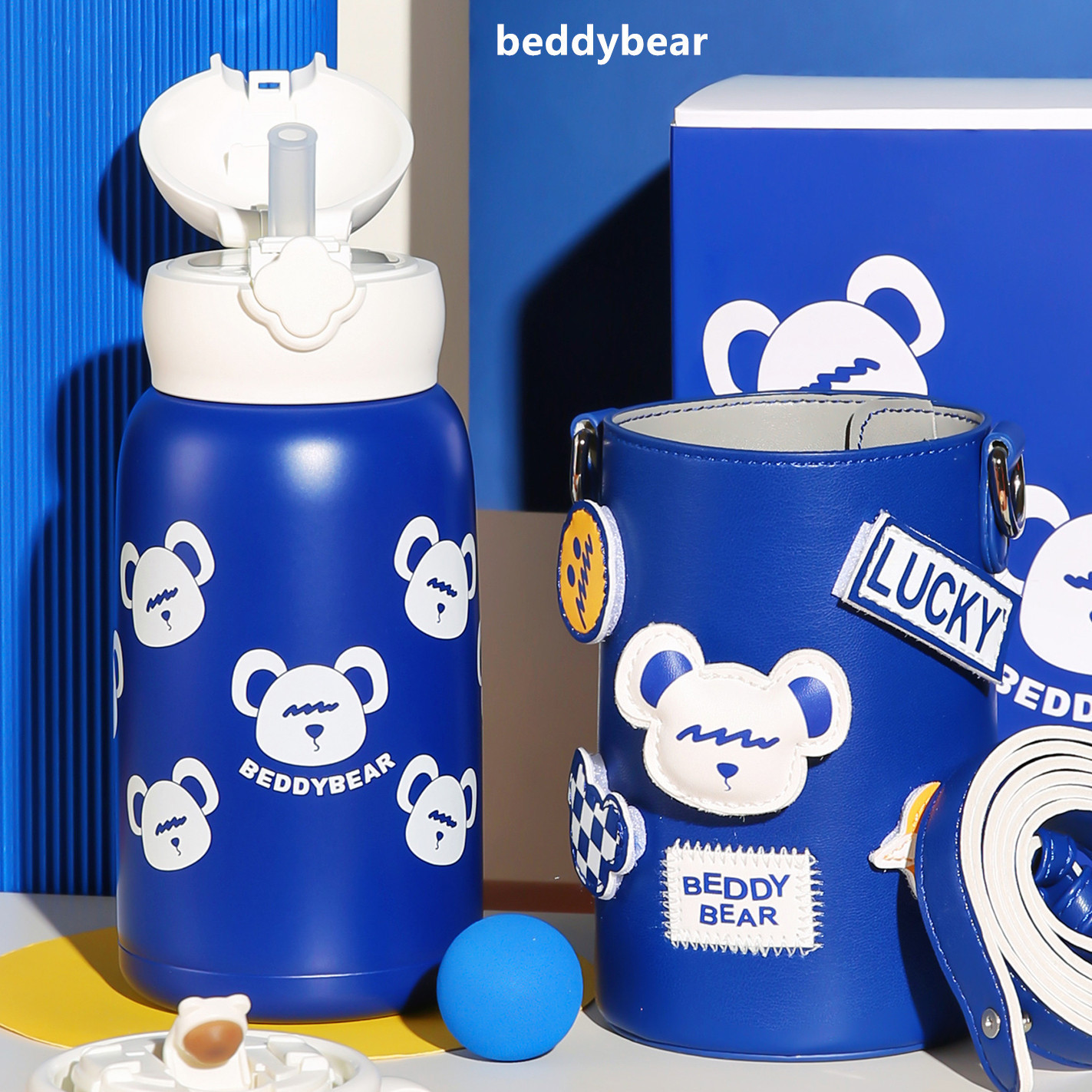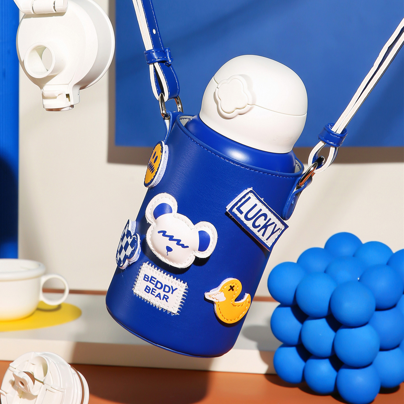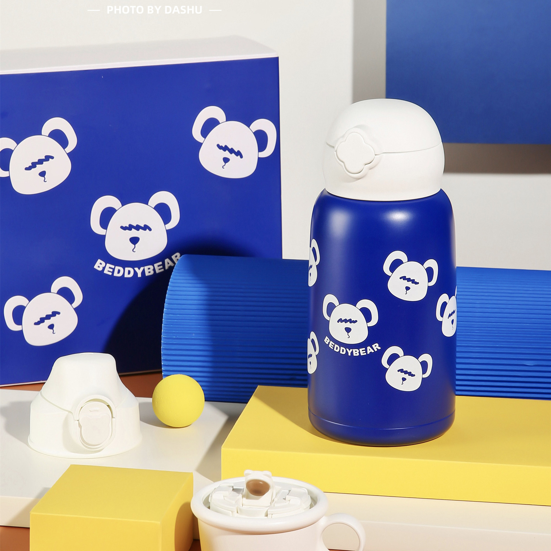 杯具熊四叶草克莱因涂鸦儿童保温杯带吸管水杯男女小学生宝宝水壶