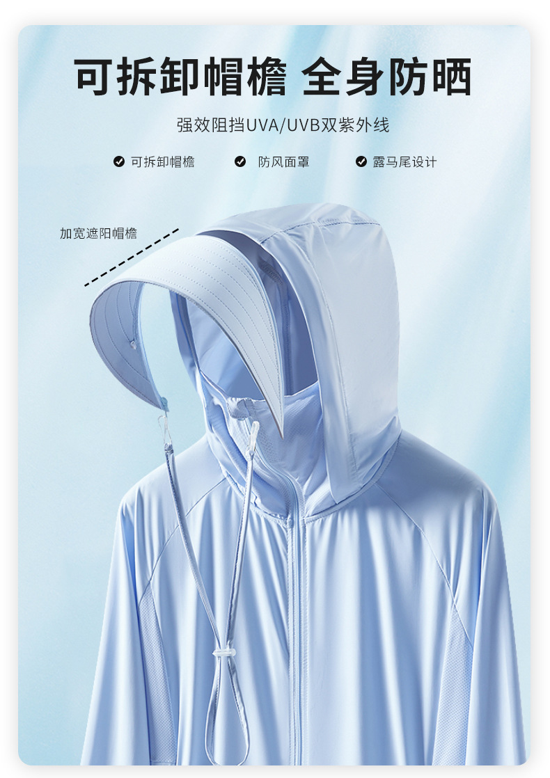 DZRZVD/杜戛地帽檐防晒衣女夏季冰感可拆卸遮阳服防紫外线UPF100蕉下同款皮肤衣 231356