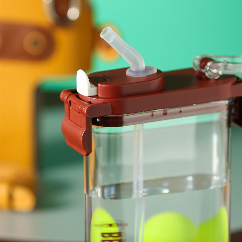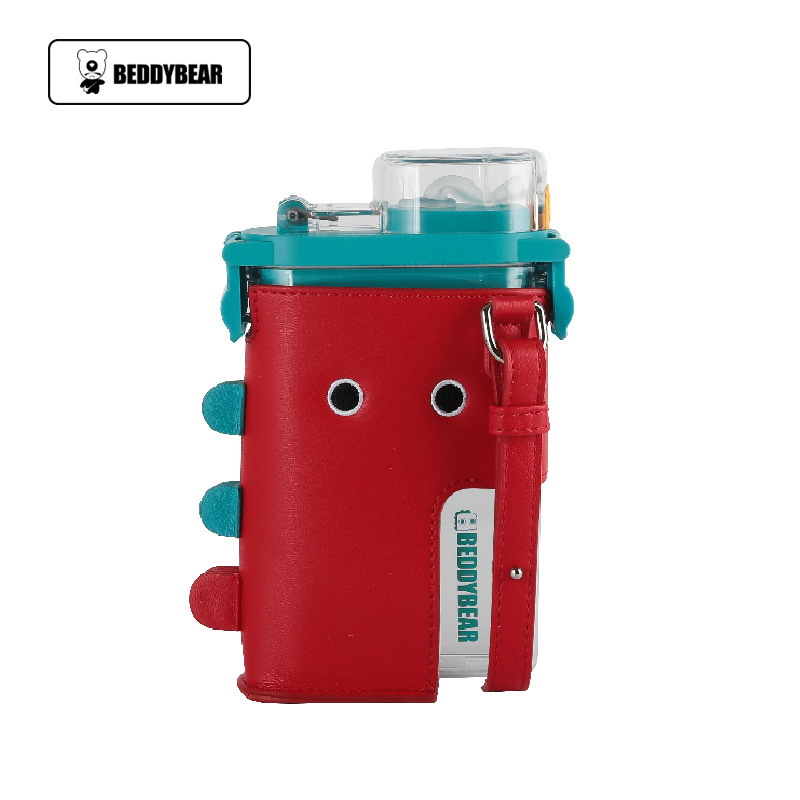 杯具熊儿童方形吸管杯夏季水杯女孩男孩上学便携背带防摔宝宝水壶