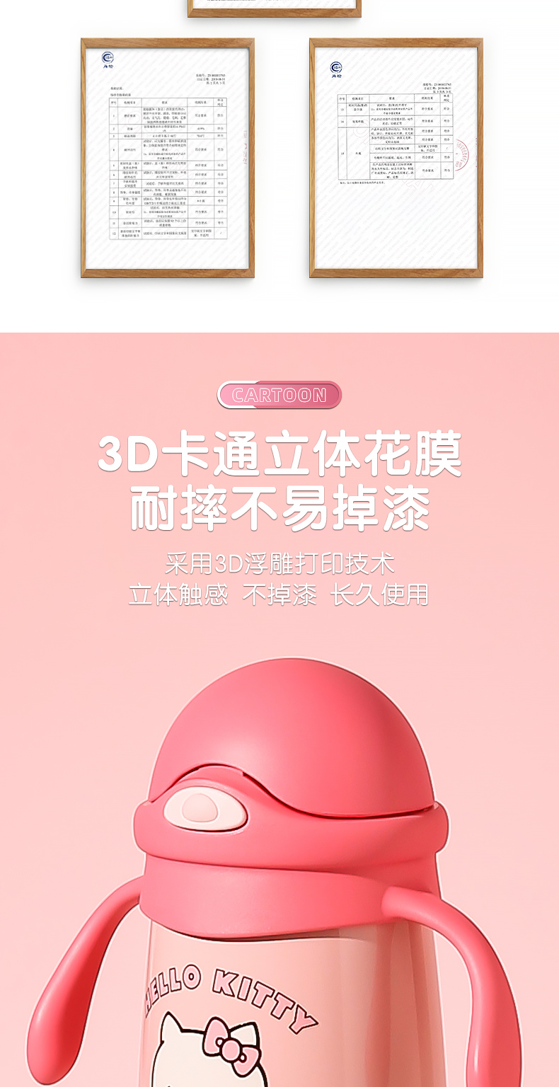 杯具熊潮酷儿童学饮保温杯卖萌KITTY猫联名水杯大肚杯带手柄水壶