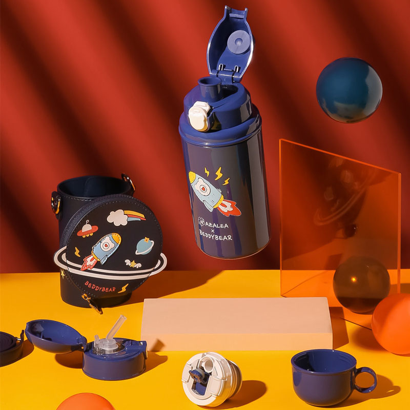 杯具熊毛绒儿童保温杯包包杯带吸管幼儿园学生水杯