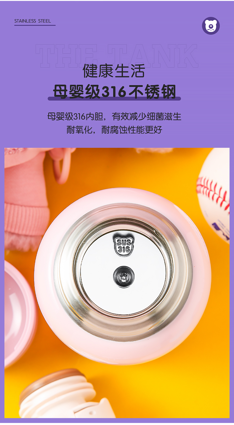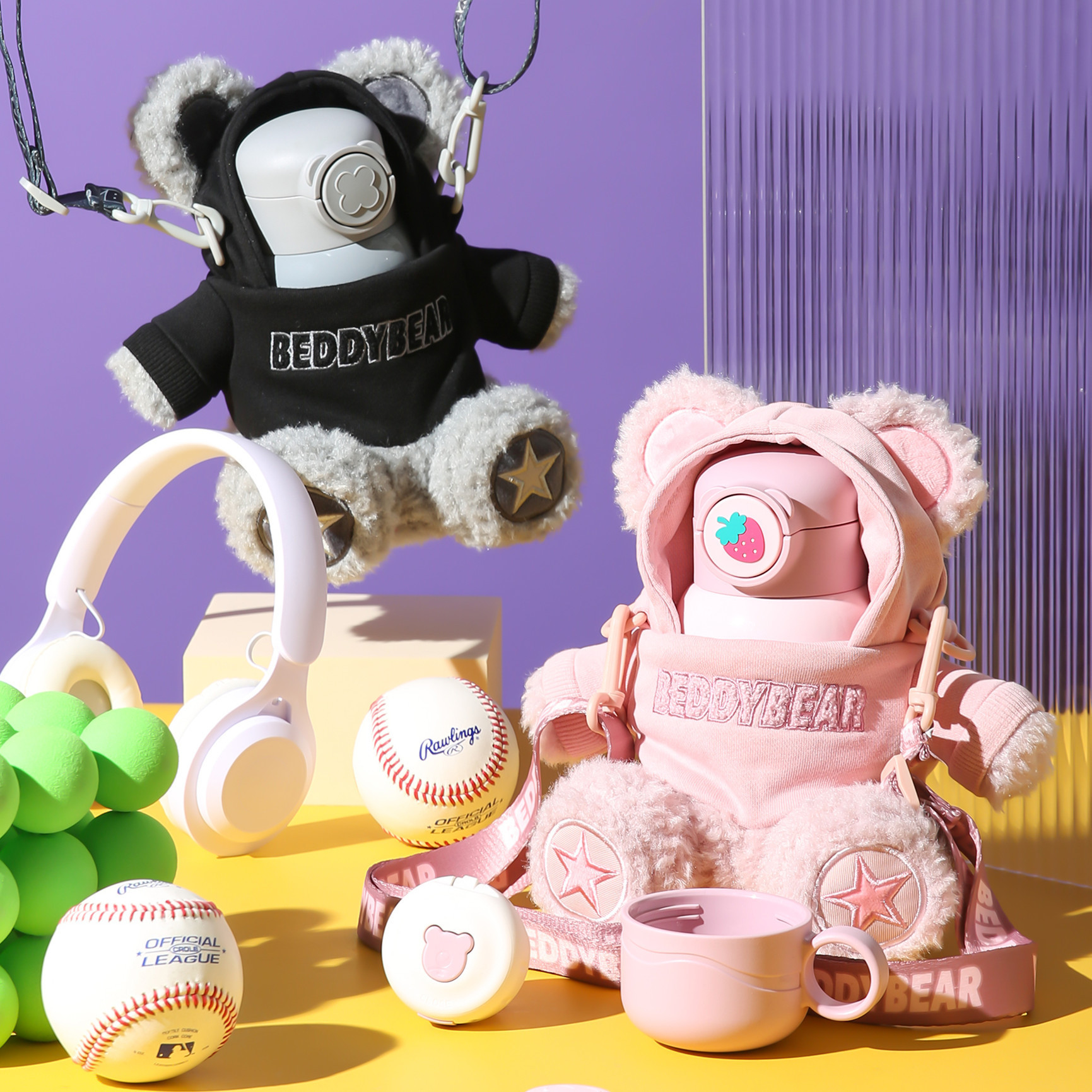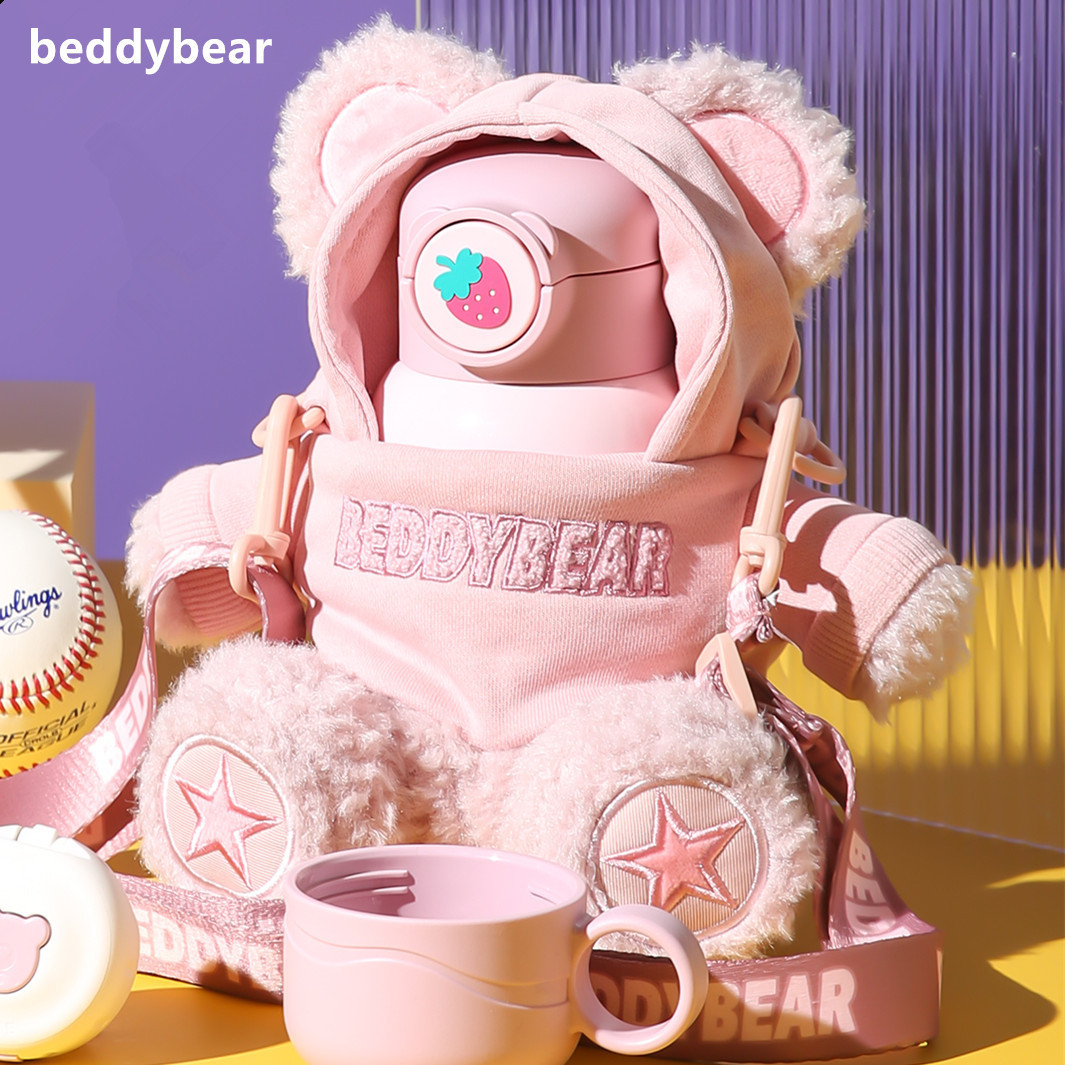 杯具熊豌豆儿童保温杯毛绒高颜值吸管杯小学生水壶宝宝幼儿园水杯