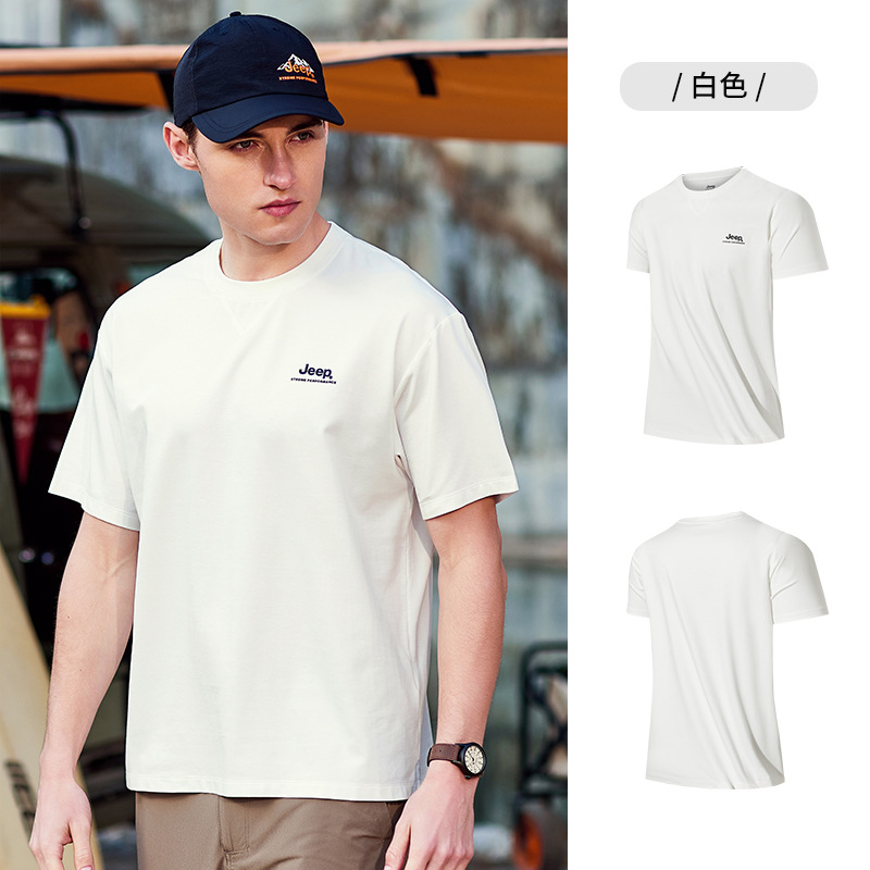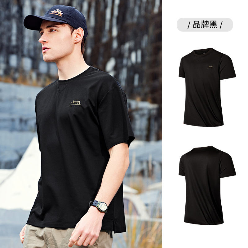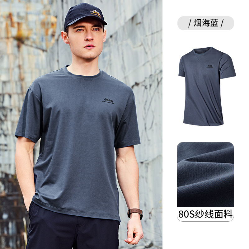 JEEP户外运动服男柔软透气短袖纯色简约速干T恤冰感百搭短袖春夏 J322094519