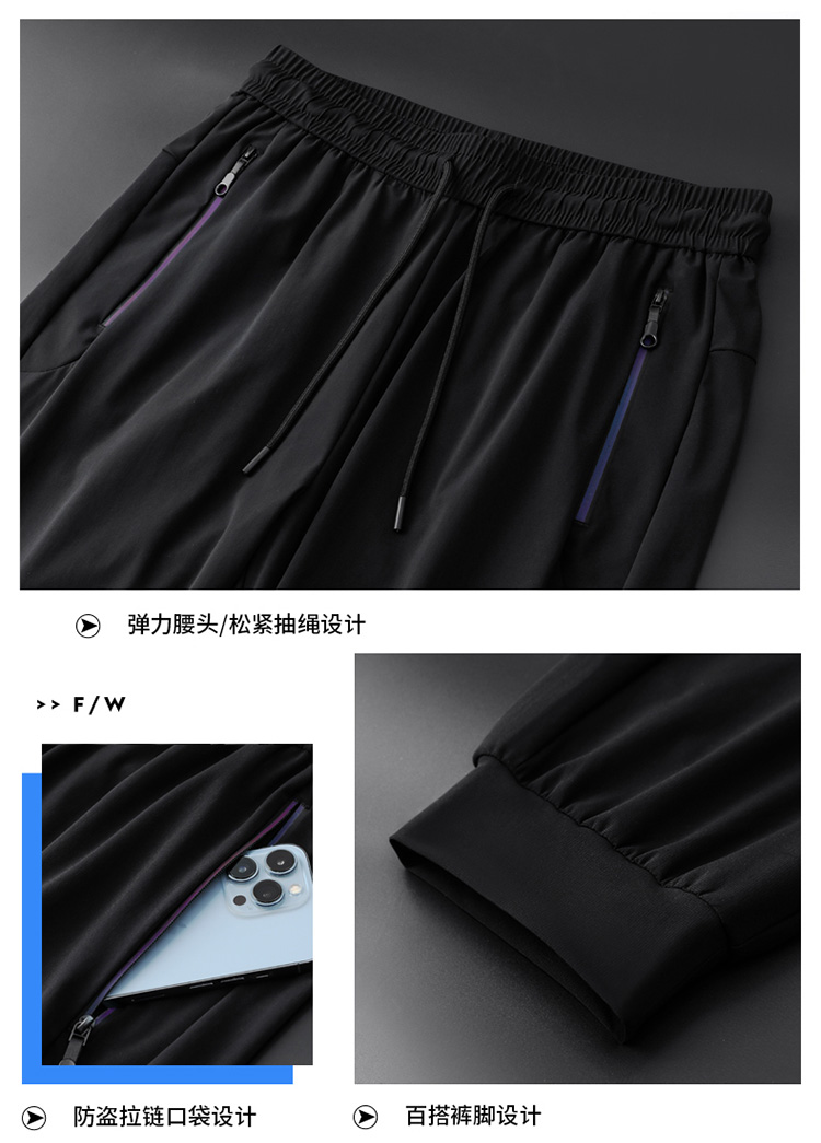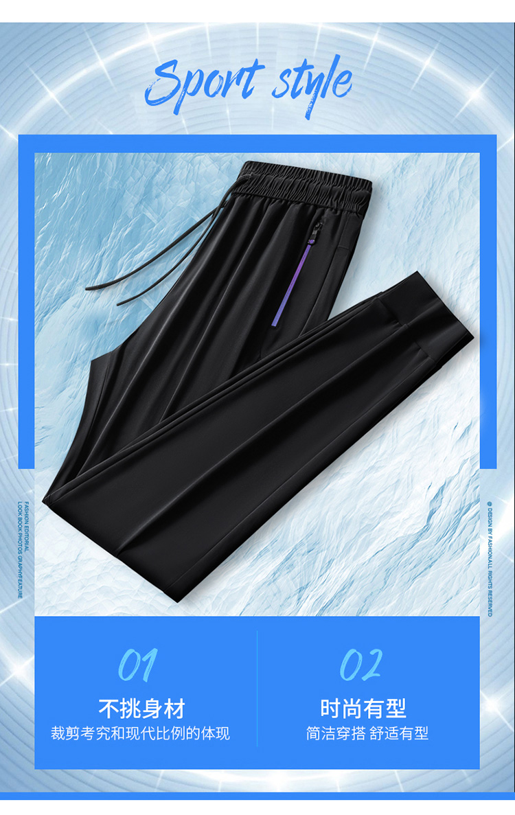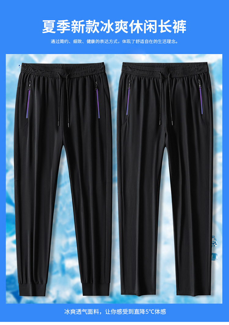 DZRZVD/杜戛地冰丝裤子男夏季薄款透气束口运动裤男宽松弹力休闲长裤230215