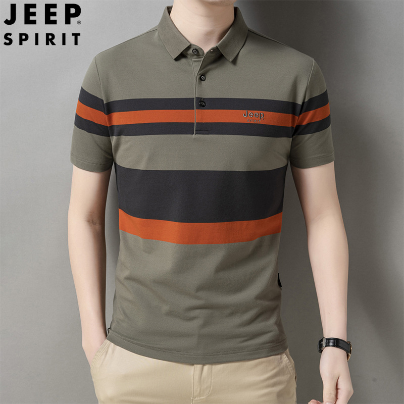 JEEP SPIRIT春夏新款休闲男士条纹短袖t恤男大码polo衫男士短袖体恤夏装 H-36156#