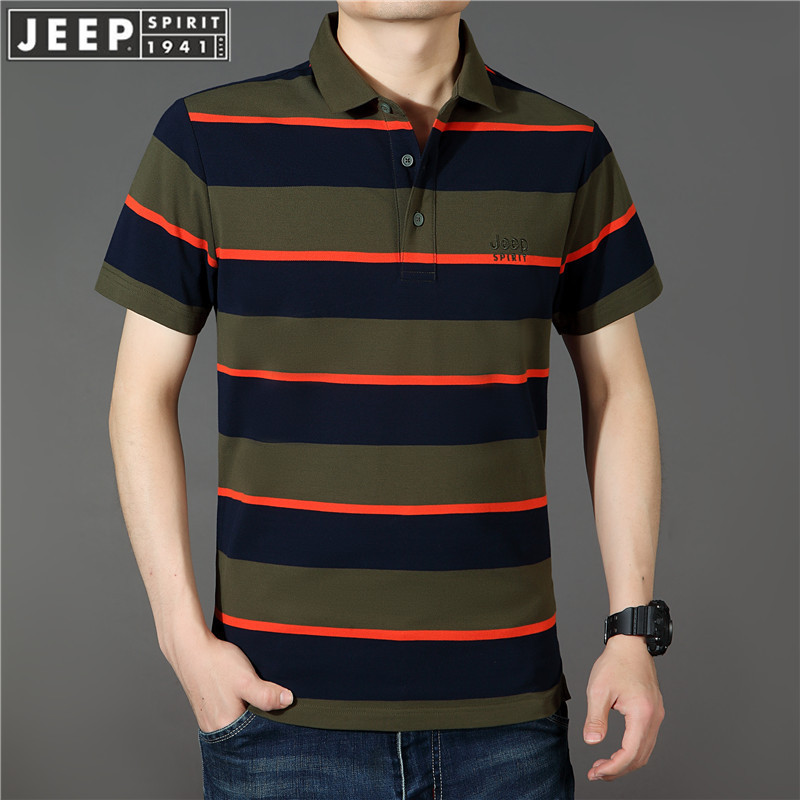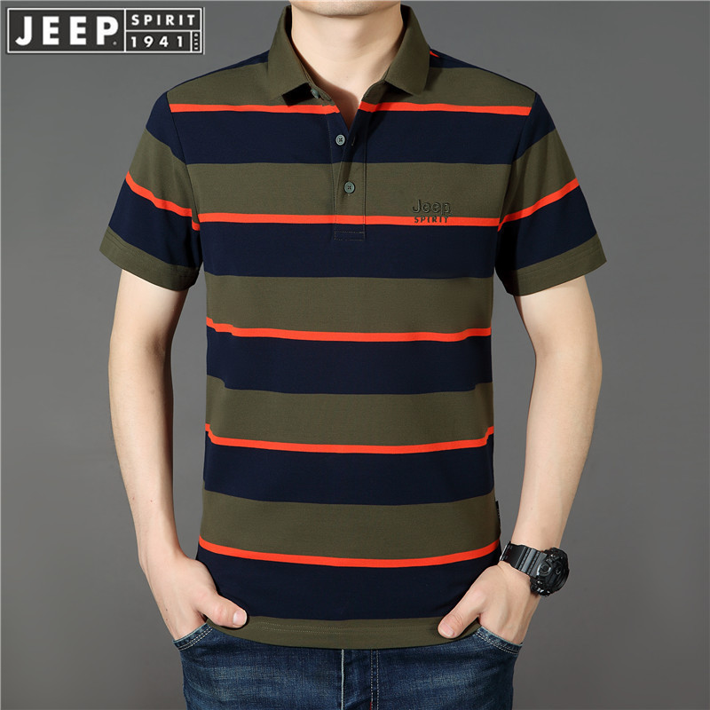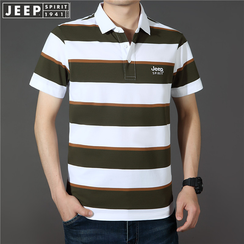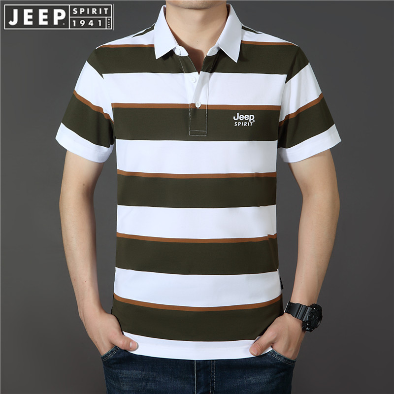 服饰配饰>男装>T恤> JEEP SPIRIT中年时尚短袖T恤男翻领休闲半袖条纹polo衫男装夏季春夏新款 PS5219
